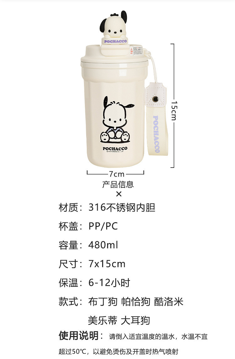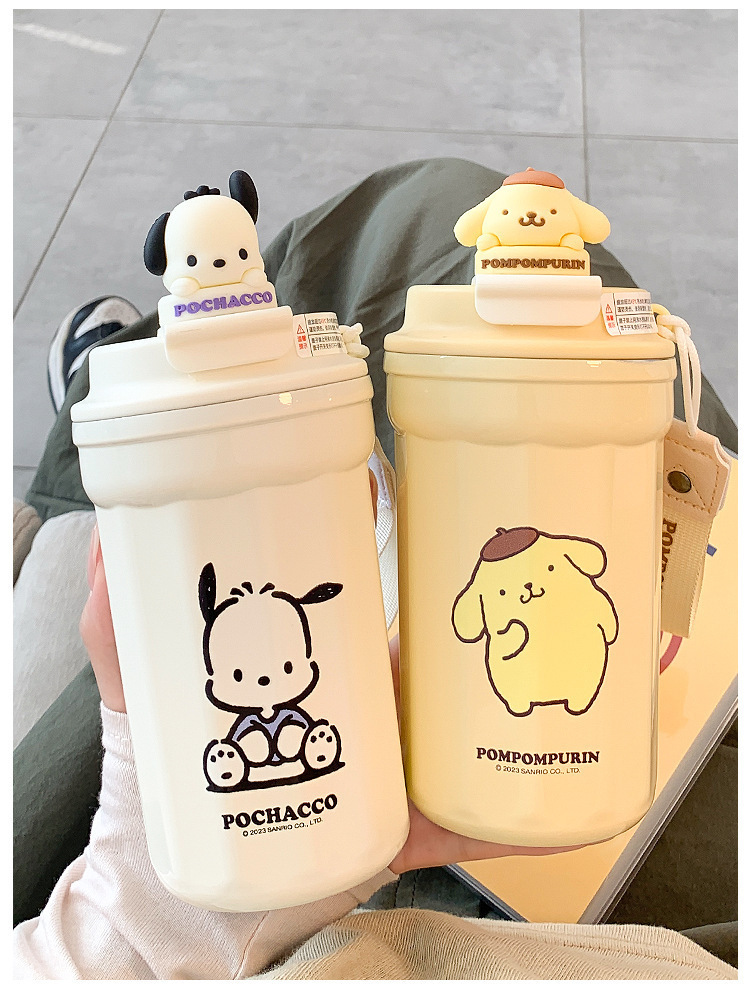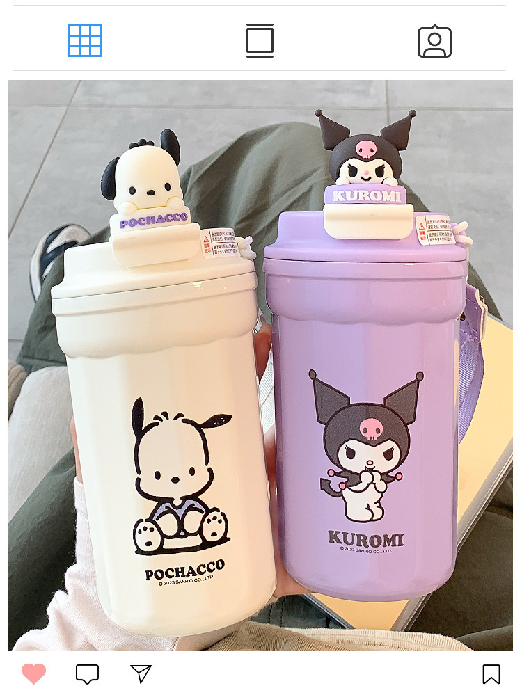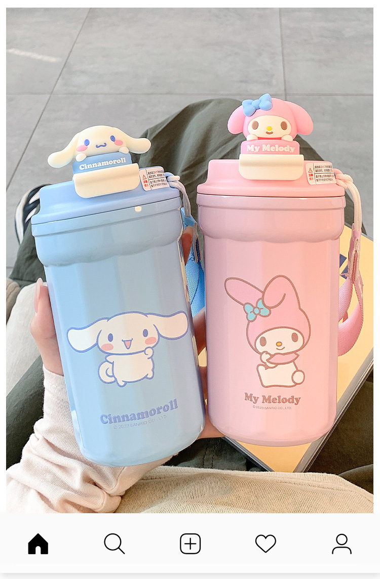 새로운 가정용 스테인레스 스틸 보온병 컵 어린이 산리오 높은 색 가치 물 컵 학생 귀여운 식품 학년 커피 컵
