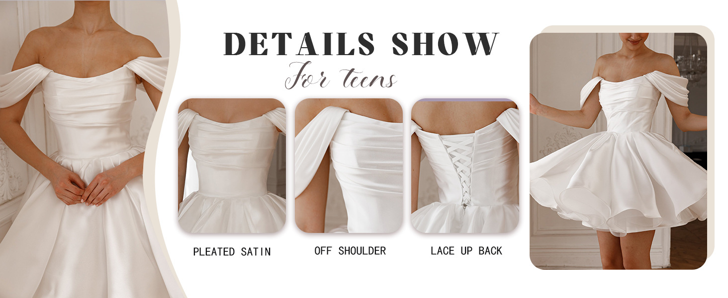 2025 여성 오프 숄더 새틴 홈 커밍 드레스 새로운 짧은 Pleated Strapless 댄스 파티 드레스 웨딩 드레스