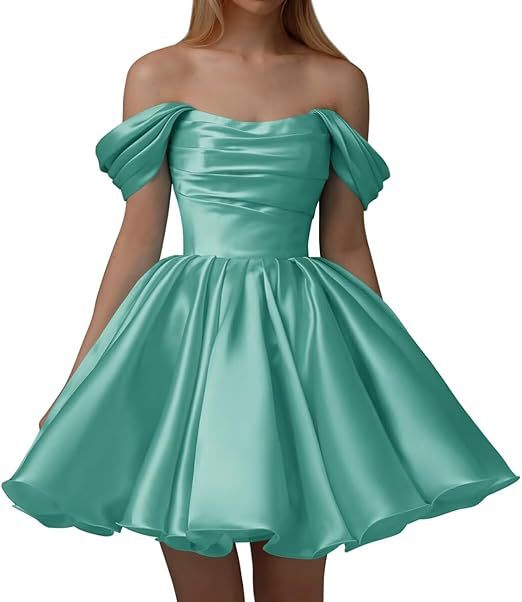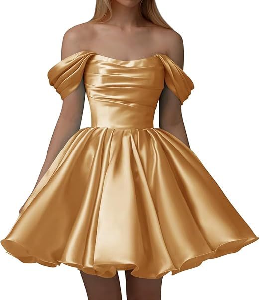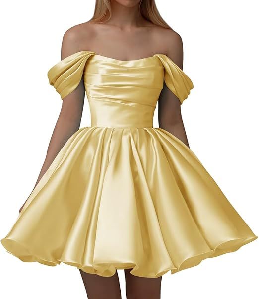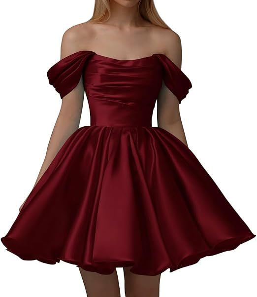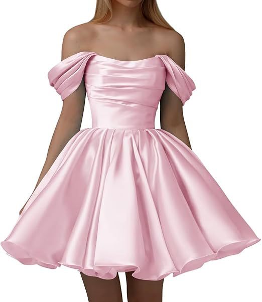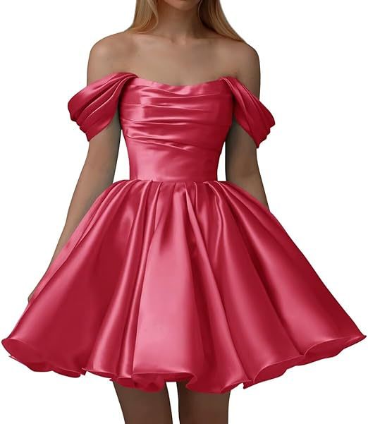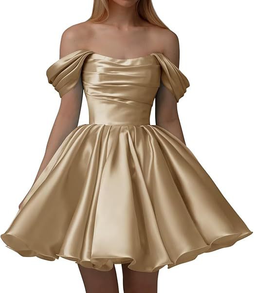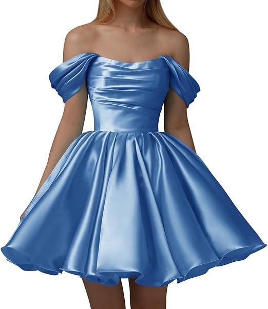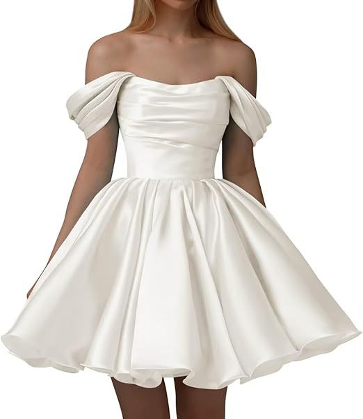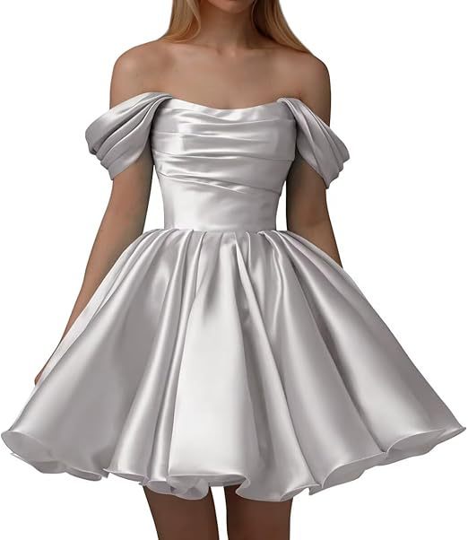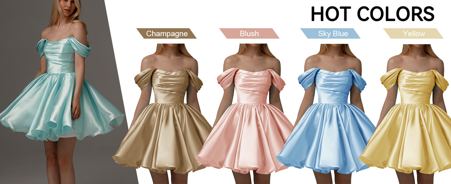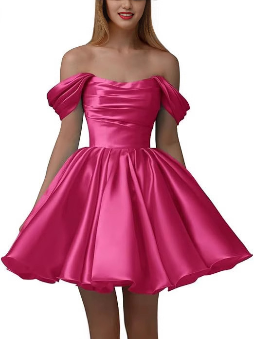 2025 여성 오프 숄더 새틴 홈 커밍 드레스 새로운 짧은 Pleated Strapless 댄스 파티 드레스 웨딩 드레스스토어 가기