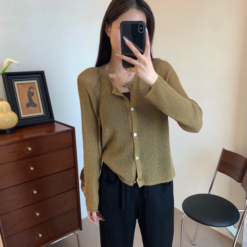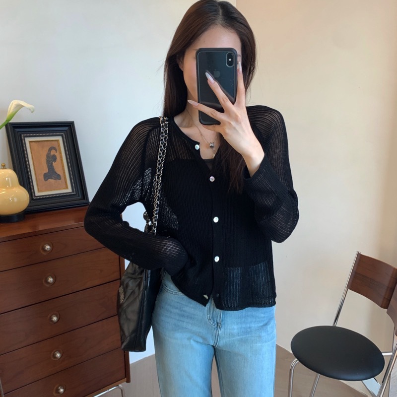 가벼운 럭셔리 틈새 기질 라운드 넥 중공 스웨터 카디건 블라우스 자외선 차단 의류 탑 여성 루즈 여름 스타일스토어 가기
