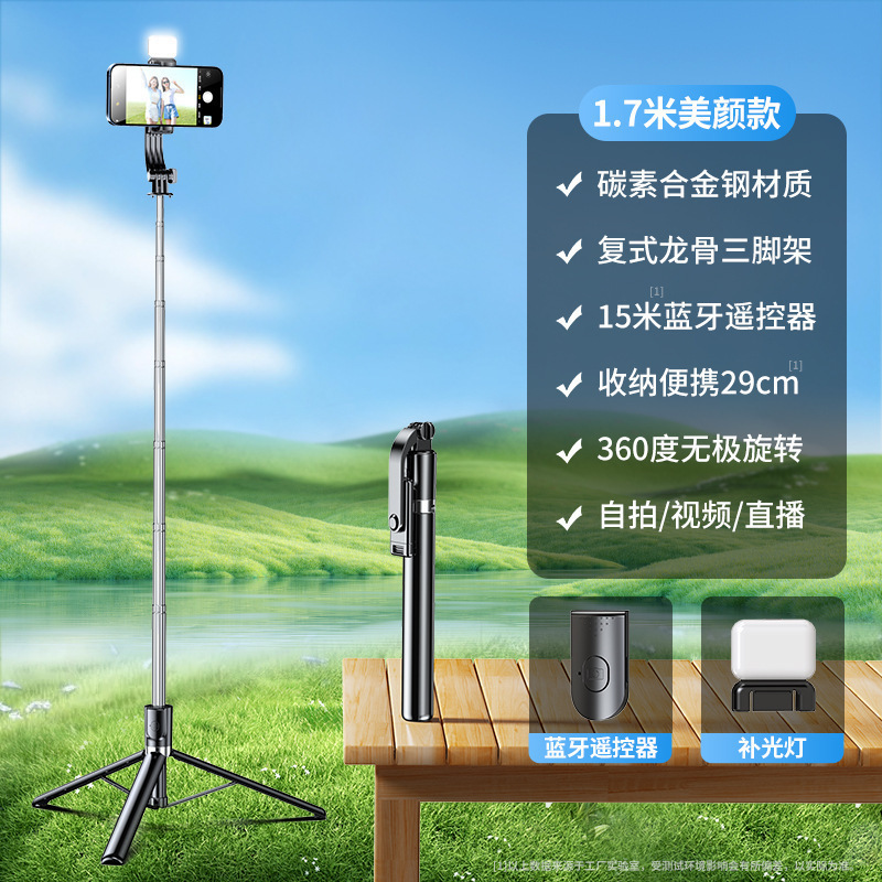 • 1.7m 블랙 [뷰티모델] 탄소강이 안정적이고 흔들리지 않음 ★ 휴대성 0 부담 ★ 휴대용/바닥 셀카.