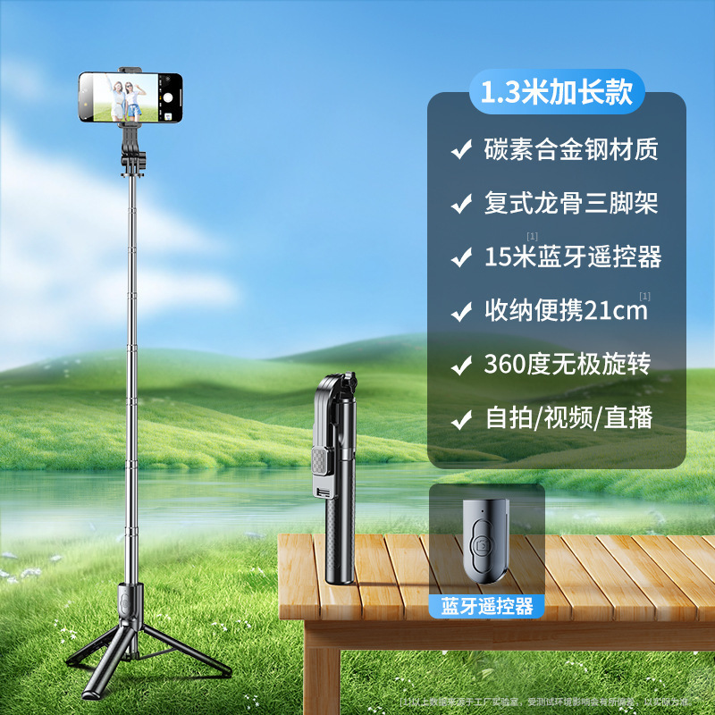 • 1.3m 블랙 [셀카모델] 탄소강으로 안정감 있고 흔들리지 않음 ★ 휴대성 0 부담 ★ 휴대용/바닥 셀카.
