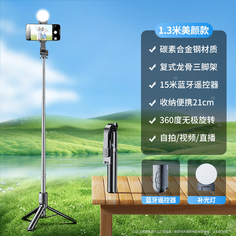 • 1.3m 블랙 [뷰티모델] 탄소강이 안정적이고 흔들리지 않음 ★ 휴대성 0 부담 ★ 휴대용/바닥 셀카.