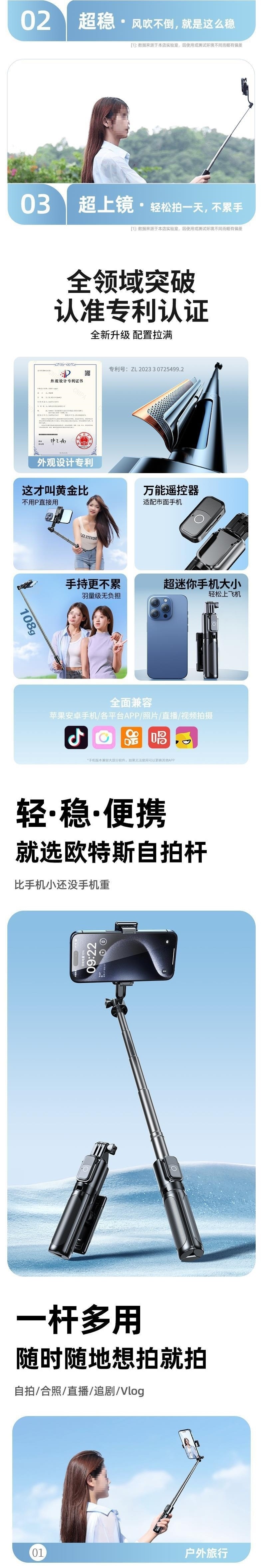 • 0.8m 블랙 [뷰티모델] 탄소강이 안정적이고 흔들리지 않음 ★ 휴대성 0 부담 ★ 손에 셀카.