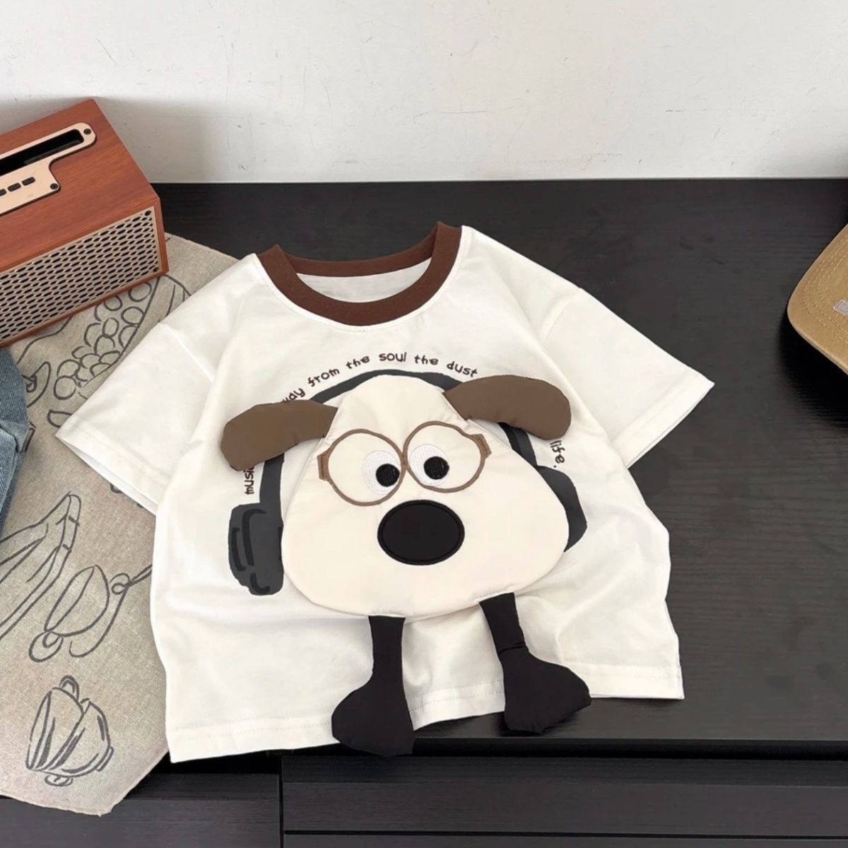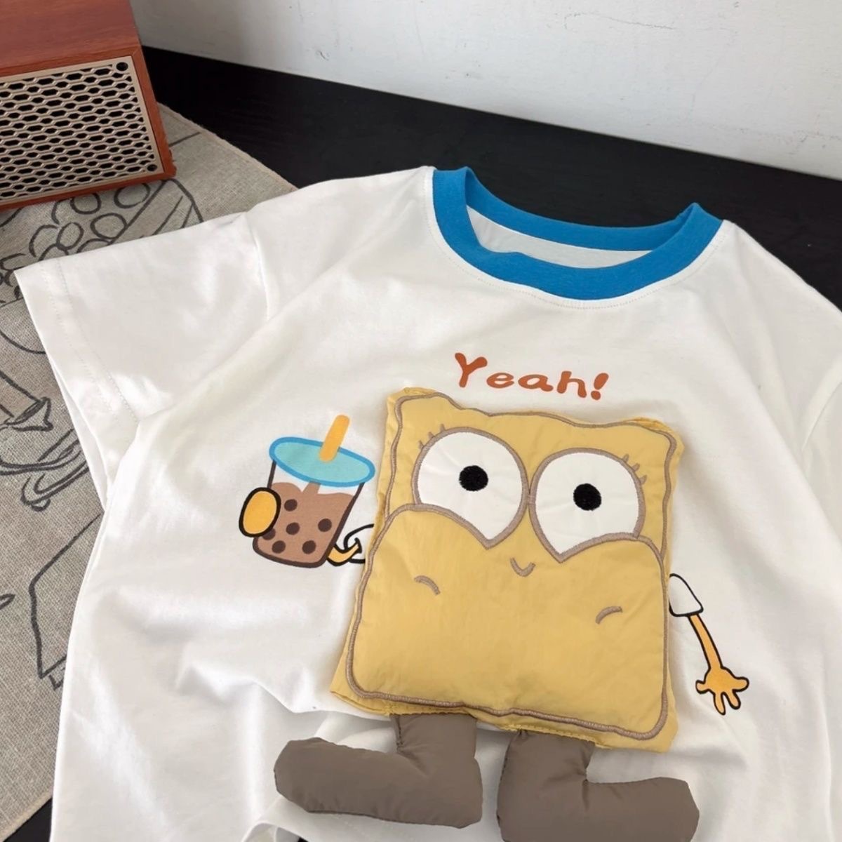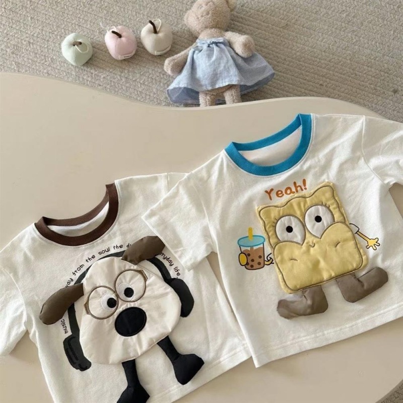 순면 어린이 만화 입체 색상 매칭 반팔 여름 새로운 아기의 귀여운 재미있는 티셔츠 라운드 넥 탑스토어 가기