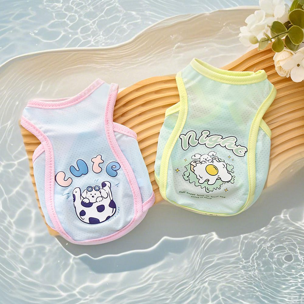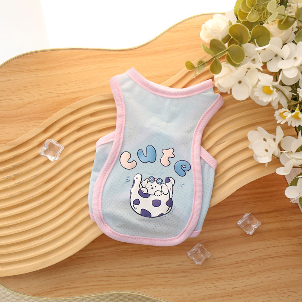 애완 동물 여름 멋진 옷 아이스 실크 통기성 옷 고양이와 개 야외 조끼 귀여운 만화 패턴 테디 Bixiong