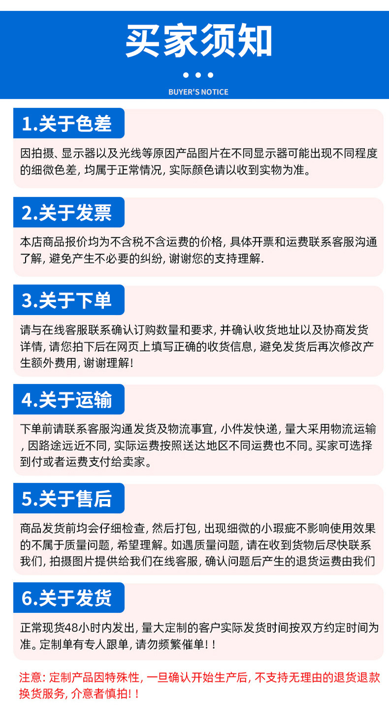 2.本店所有产品是不含税价格,开票详询客服,需另外加税点。
