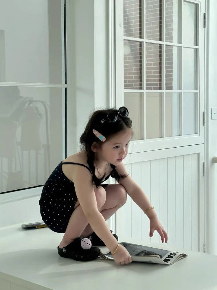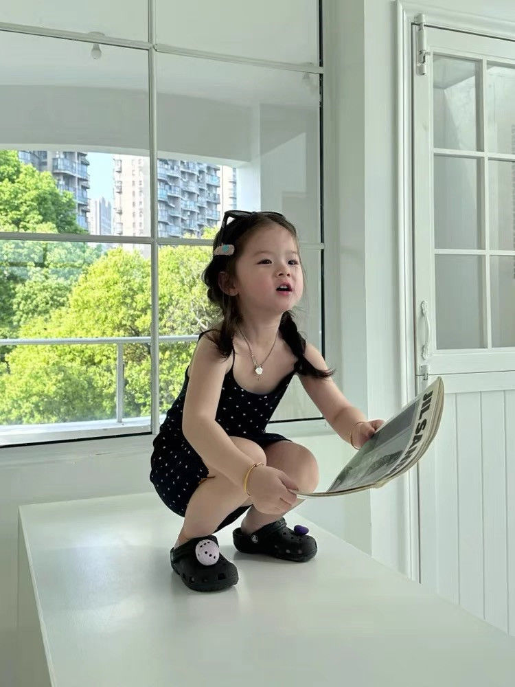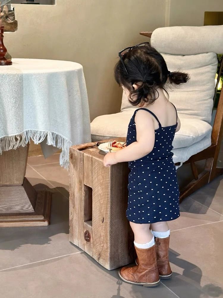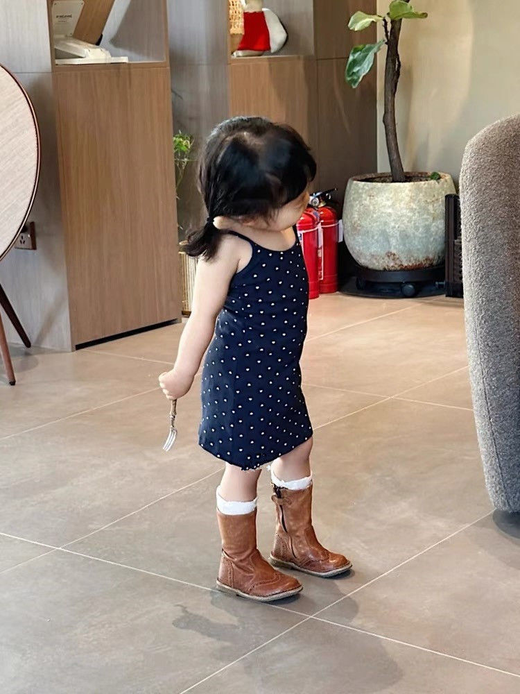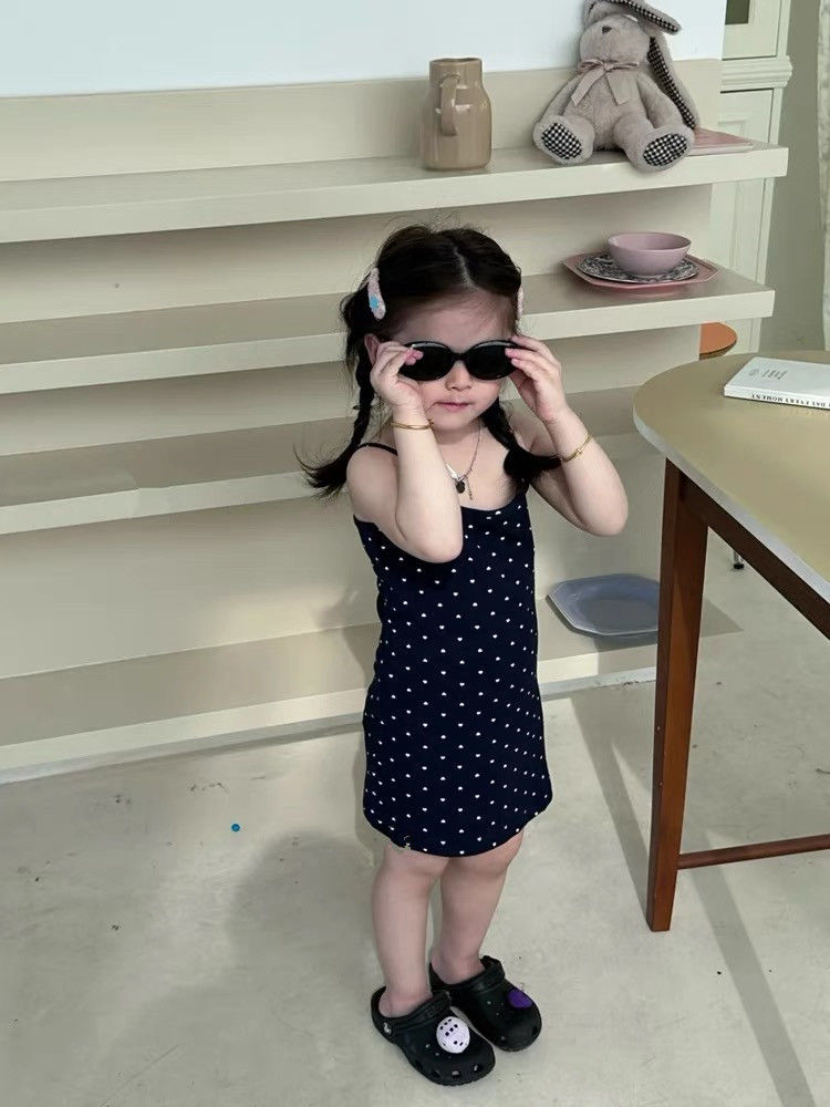 여아 스타일 슬림핏 중간 길이 드레스 어린이 여름 아기 소녀 귀여운 민소매 풀 프린트 러브 서스펜더 스커트