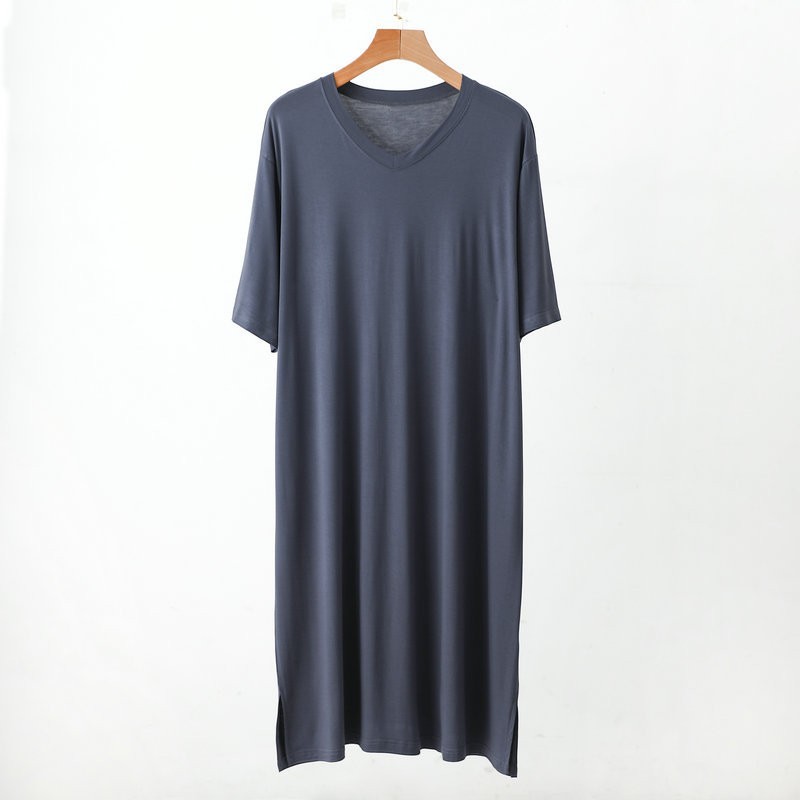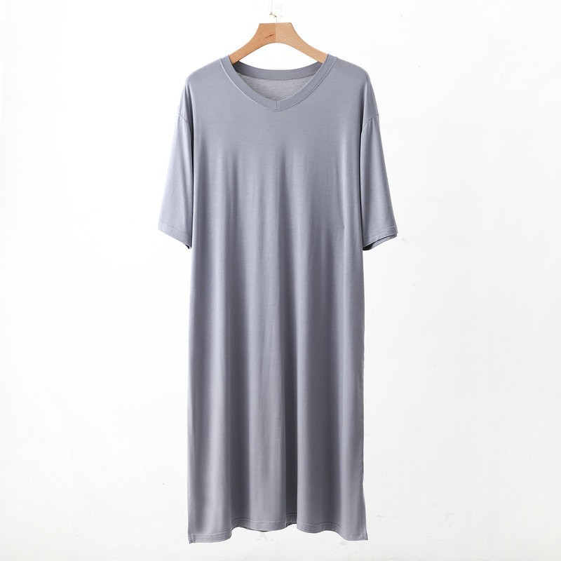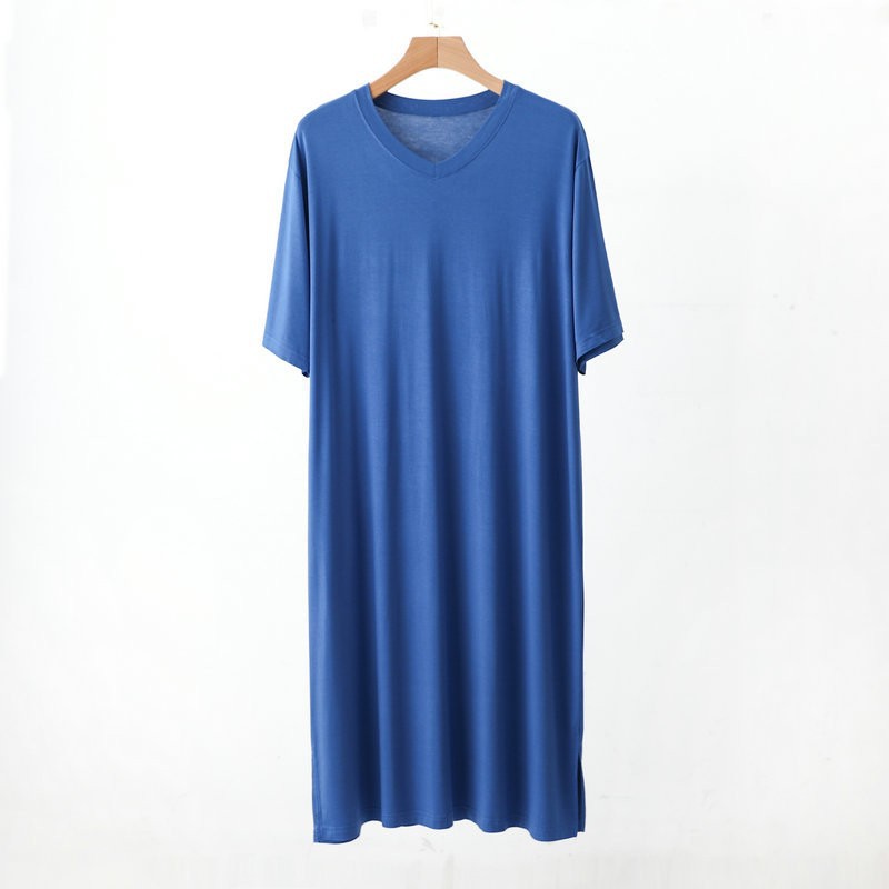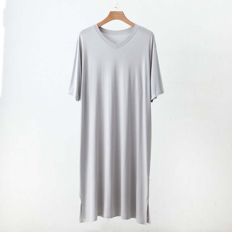모달 코튼 잠옷 남성 여름 신작 대형 루즈 브이넥 솔리드 컬러 홈웨어 얇은 스타일은 잠옷 외부에 착용 가능스토어 가기