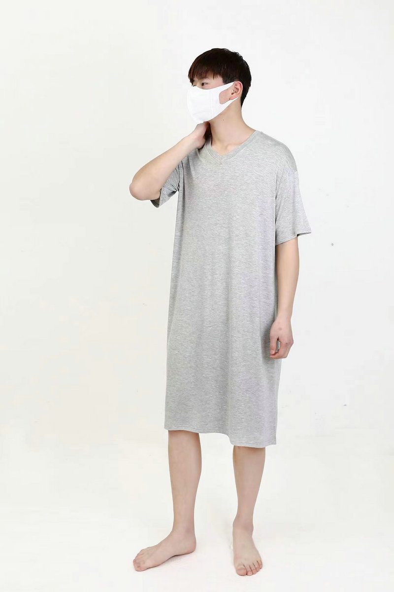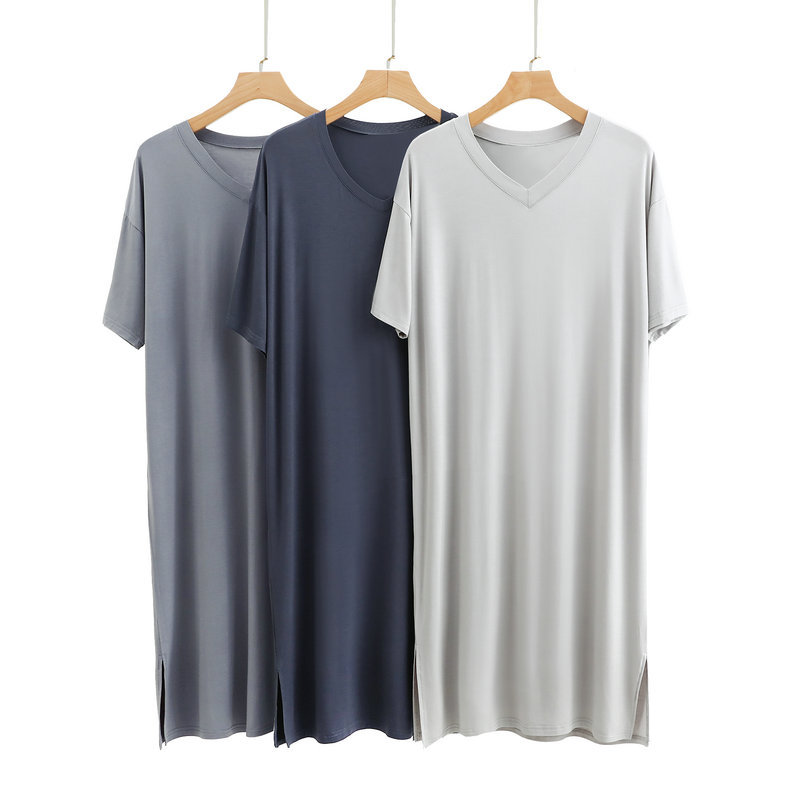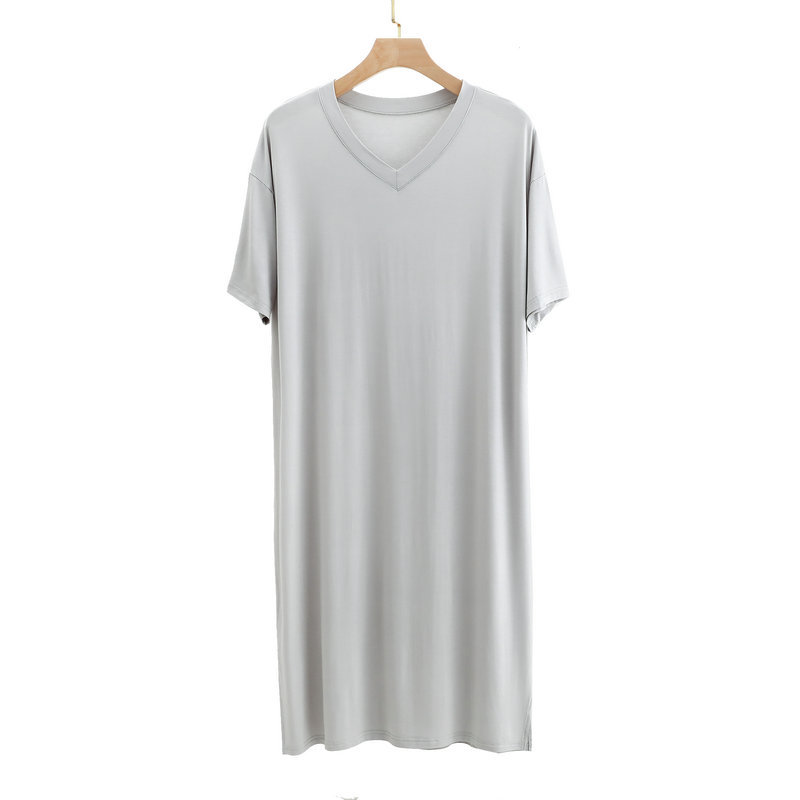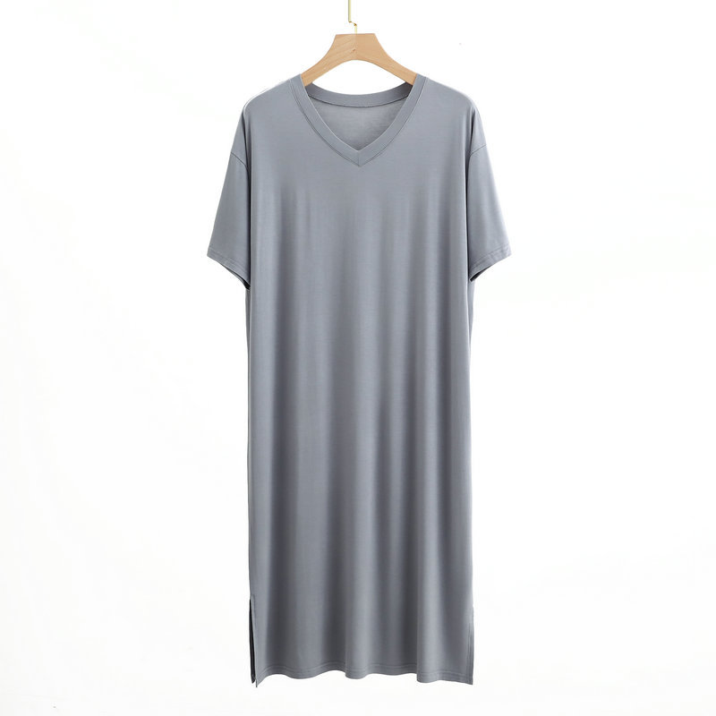 모달 코튼 잠옷 남성 여름 신작 대형 루즈 브이넥 솔리드 컬러 홈웨어 얇은 스타일은 잠옷 외부에 착용 가능