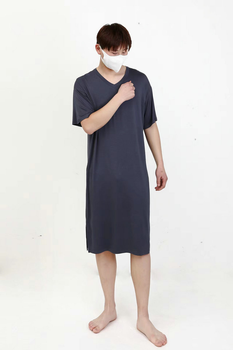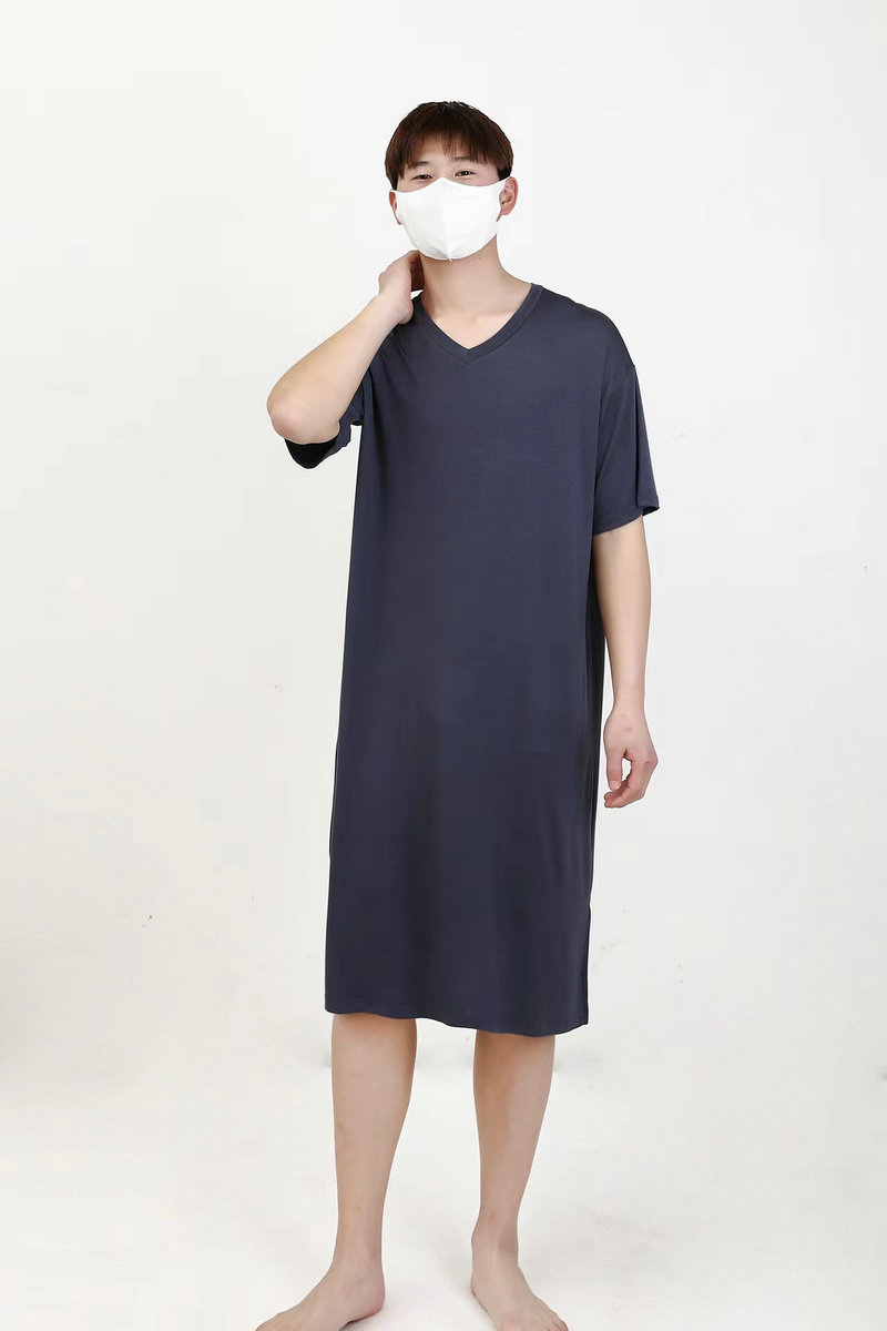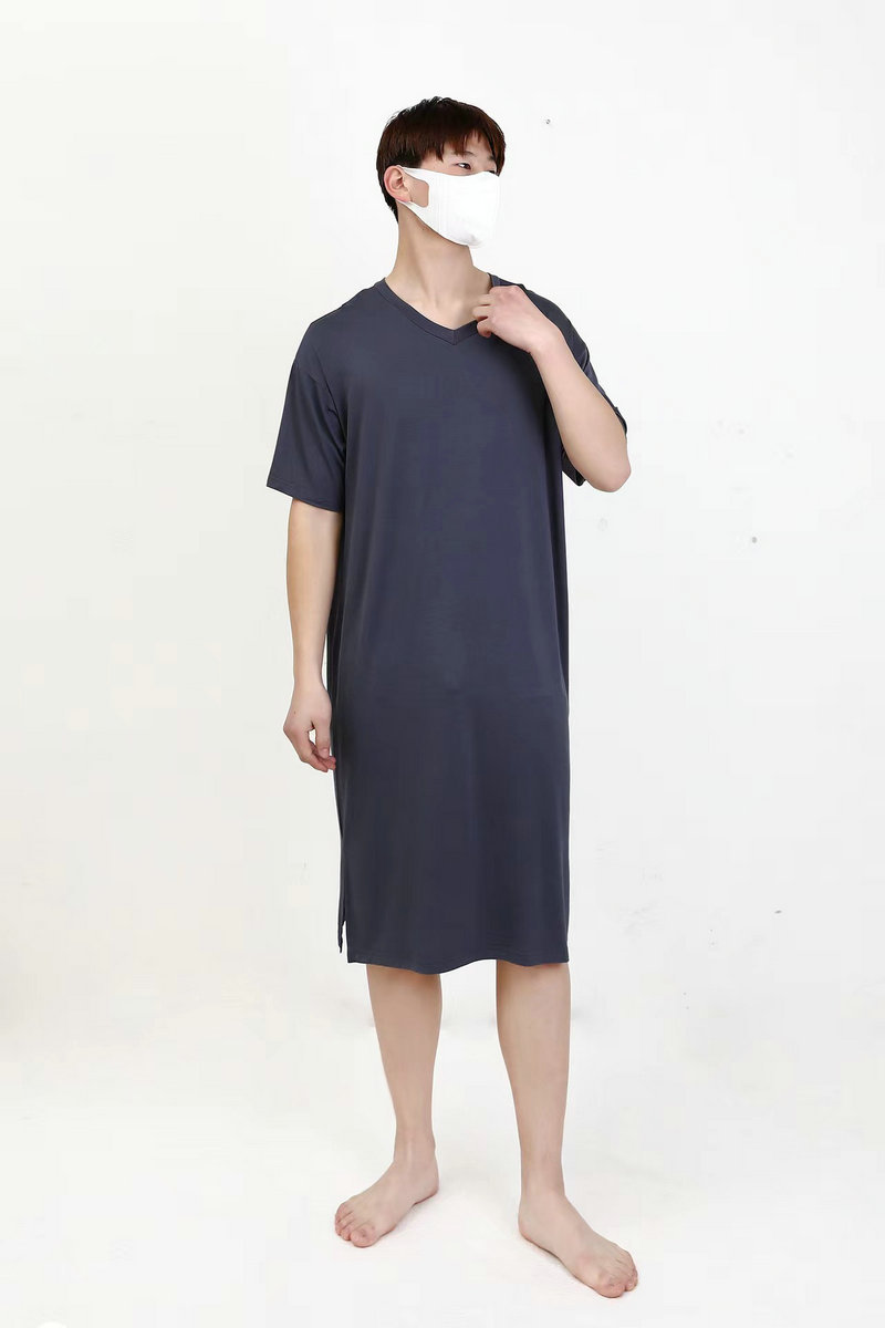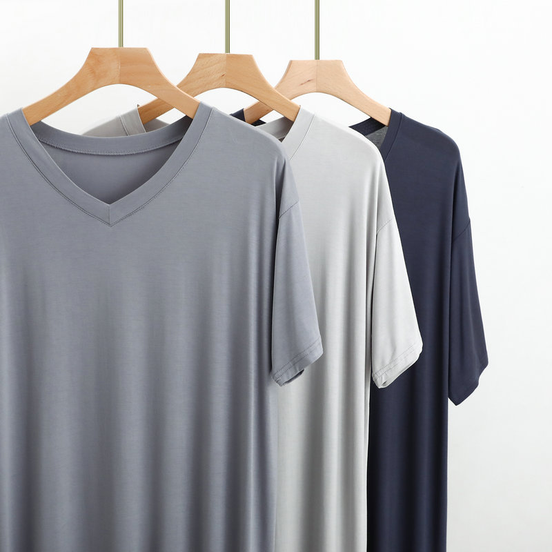 모달 코튼 잠옷 남성 여름 신작 대형 루즈 브이넥 솔리드 컬러 홈웨어 얇은 스타일은 잠옷 외부에 착용 가능