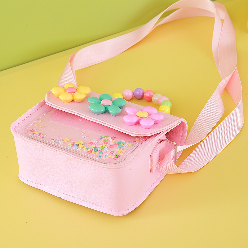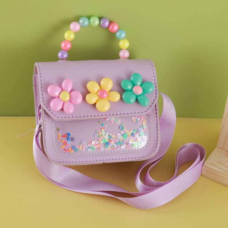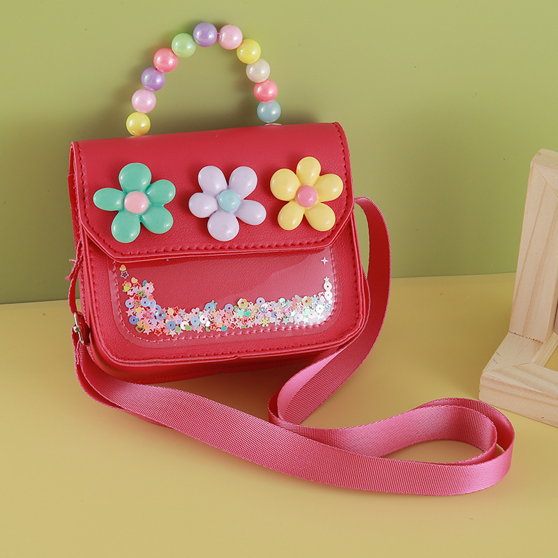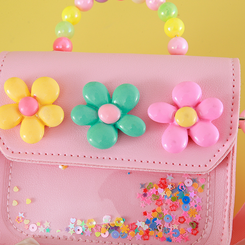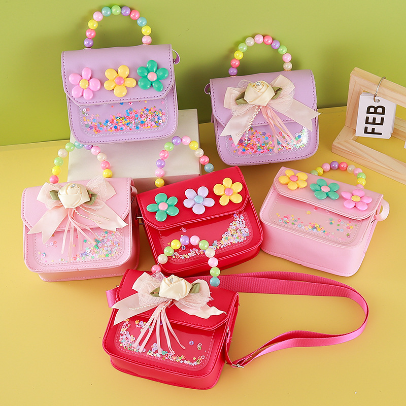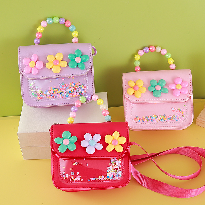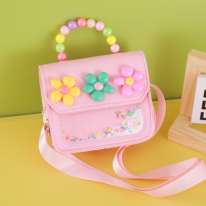 어린이 가방 어린이 귀여운 작은 꽃 진주 휴대용 어깨 가방 학생 캠퍼스 카드 식사 카드 동전 지갑 도매스토어 가기