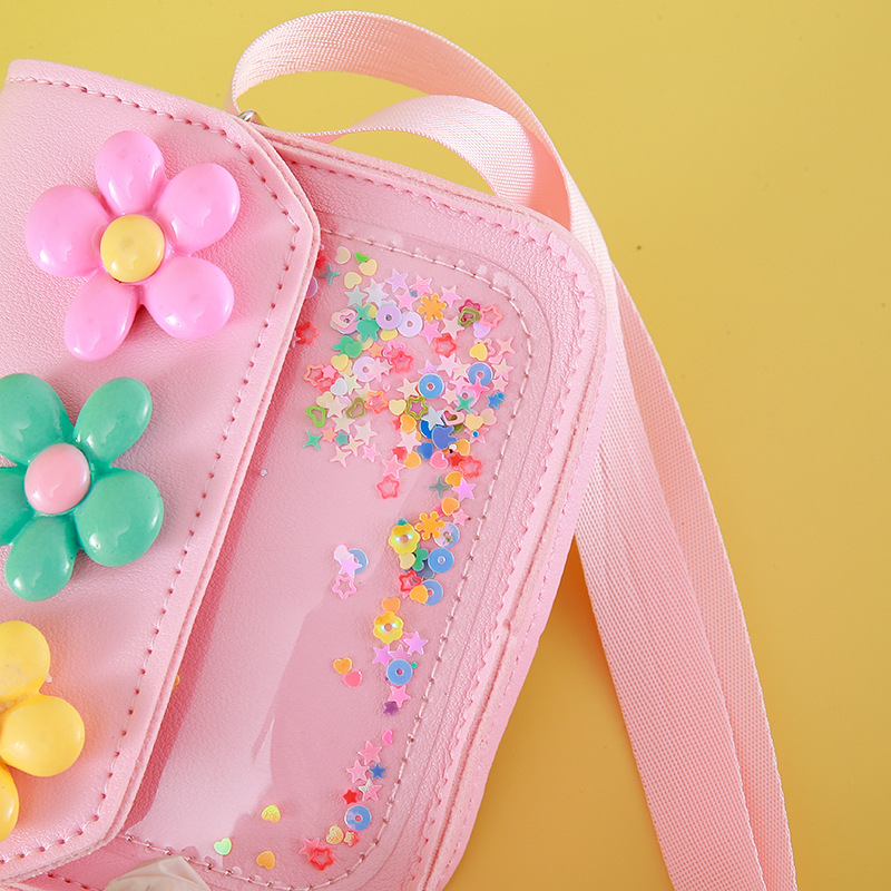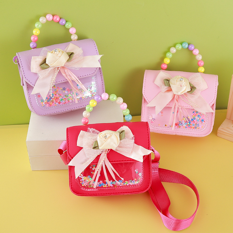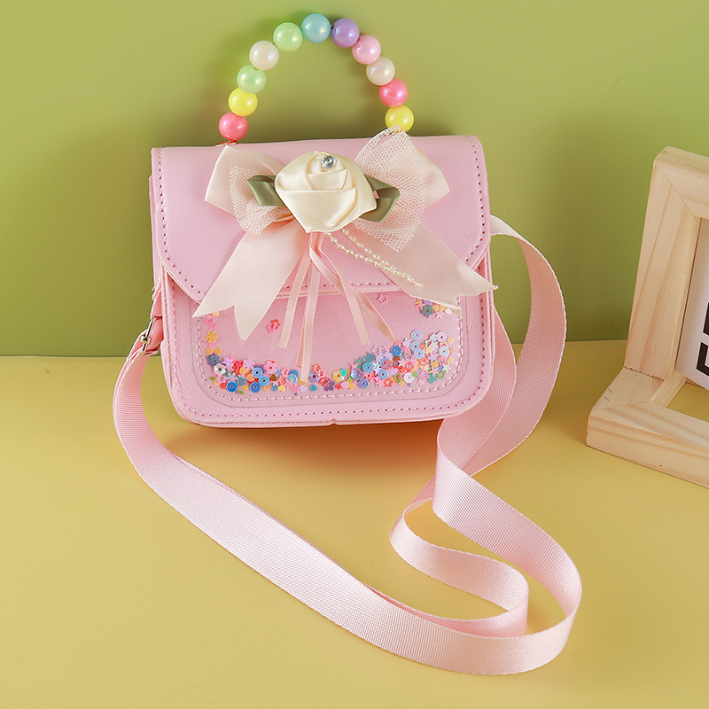 어린이 가방 어린이 귀여운 작은 꽃 진주 휴대용 어깨 가방 학생 캠퍼스 카드 식사 카드 동전 지갑 도매