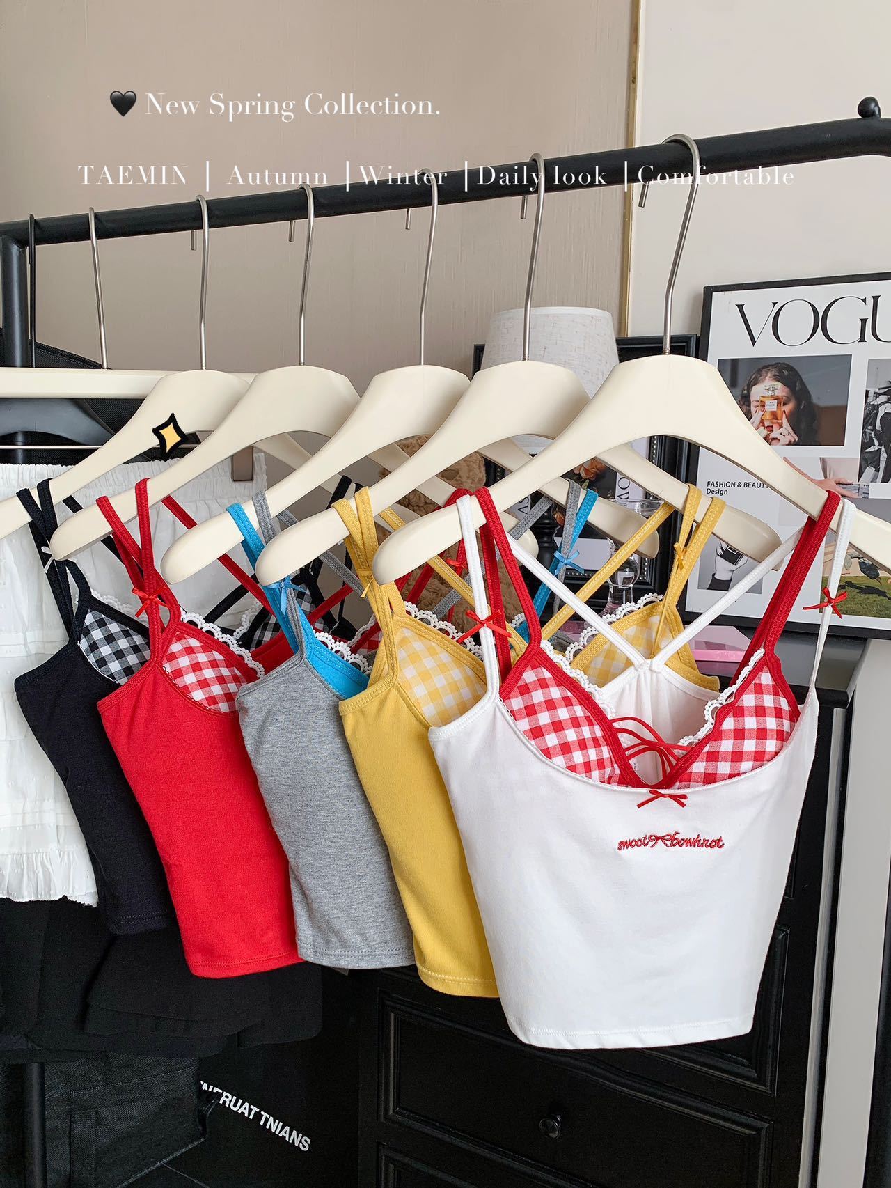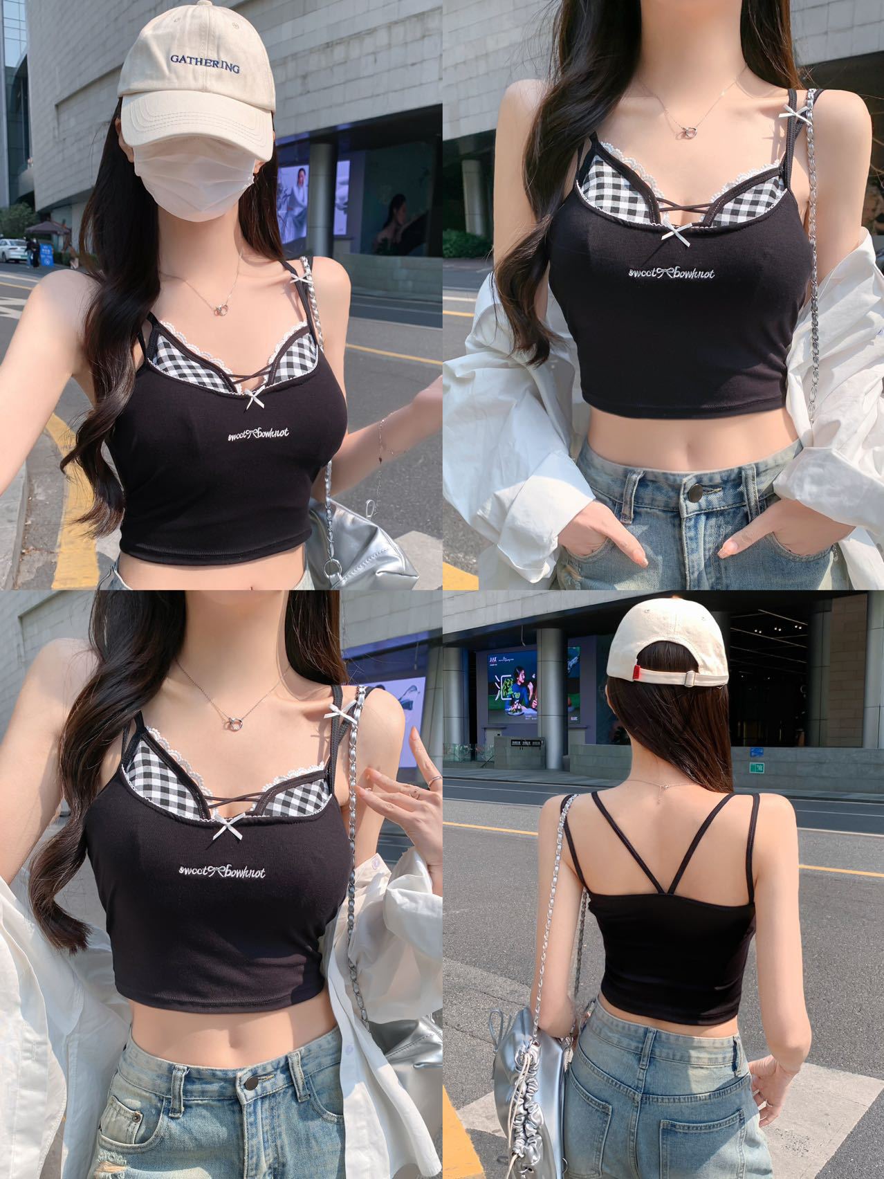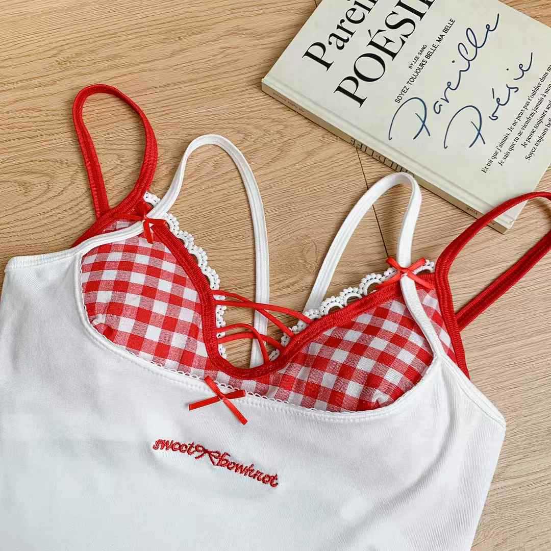퓨어 러스트 스타일 페이크 투피스 컬러풀 크로스 브라 캐미솔 핫걸 여름 섹시 올 매치 아우터 레이어드 탑스토어 가기