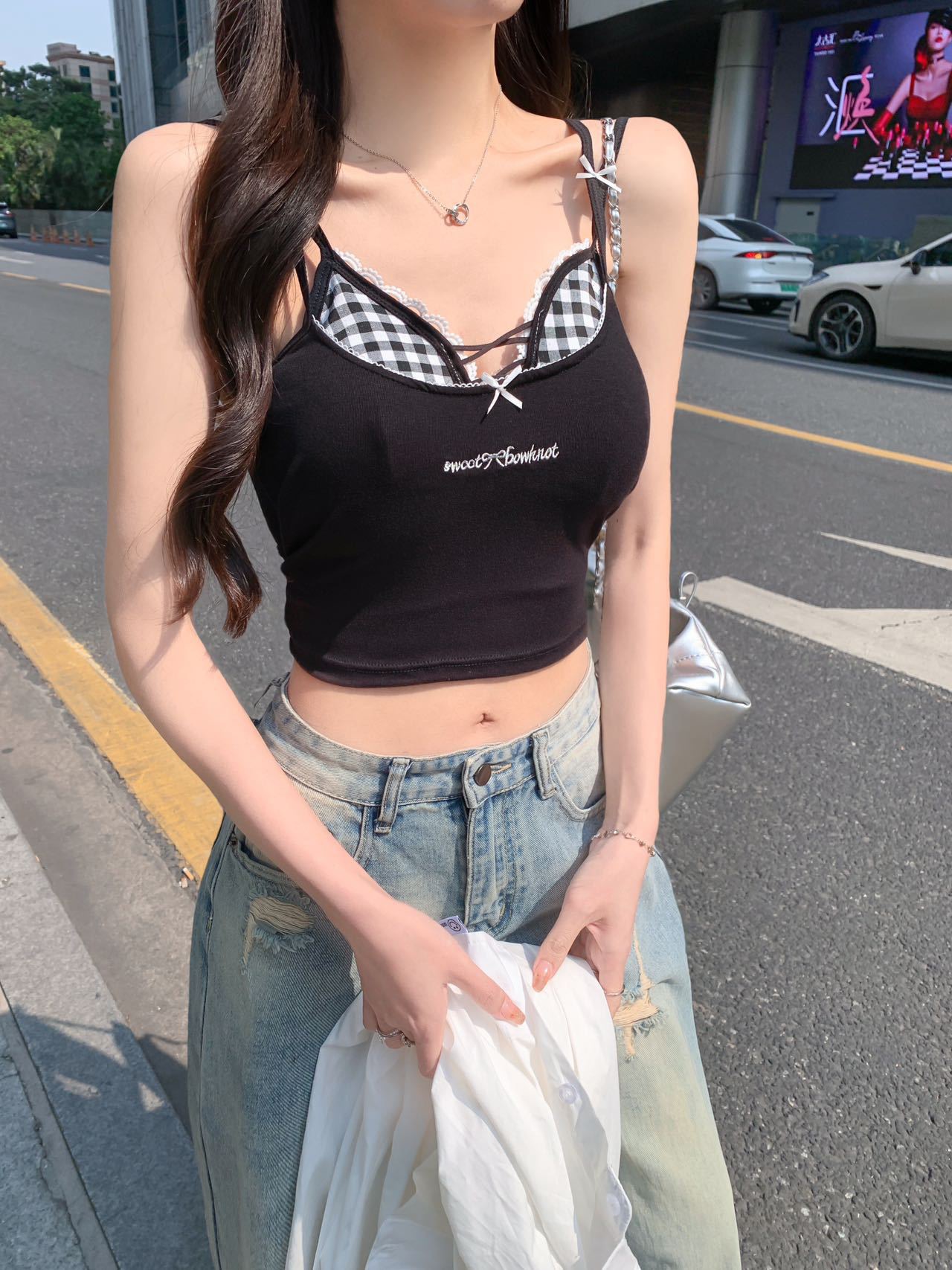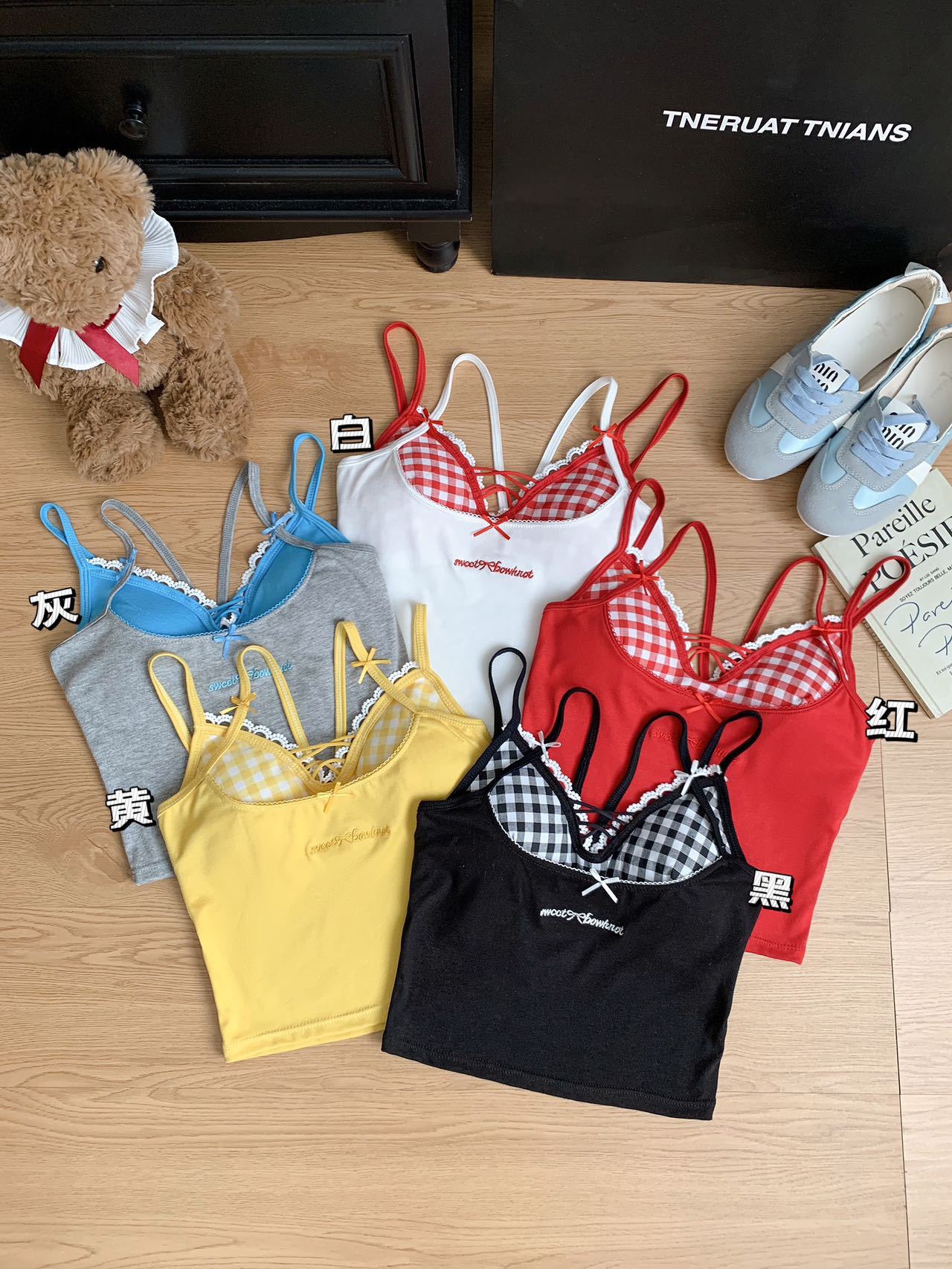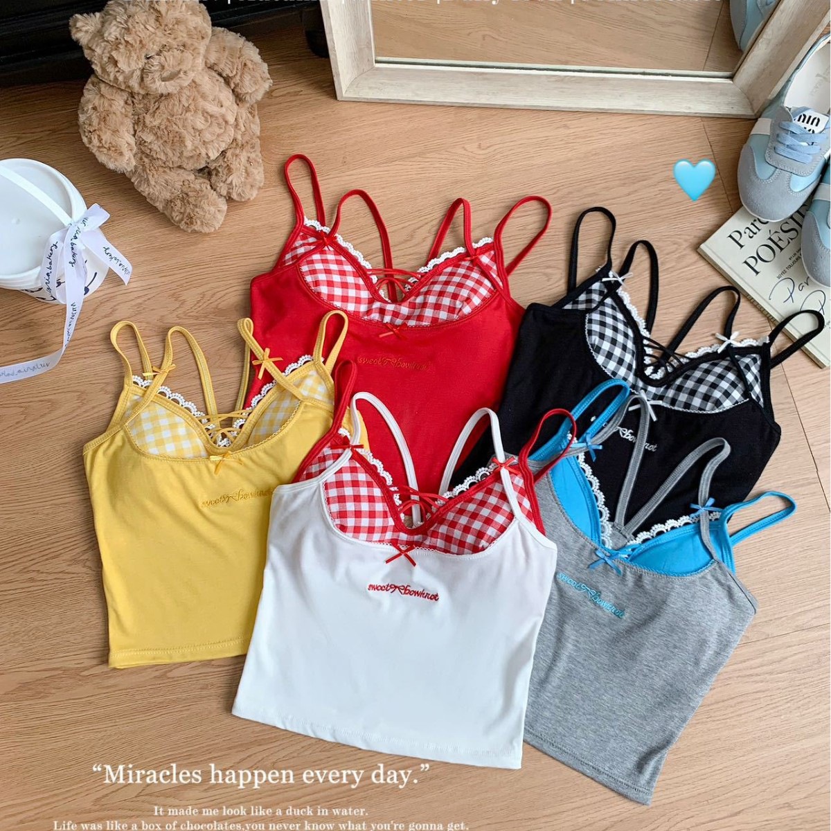 퓨어 러스트 스타일 페이크 투피스 컬러풀 크로스 브라 캐미솔 핫걸 여름 섹시 올 매치 아우터 레이어드 탑스토어 가기