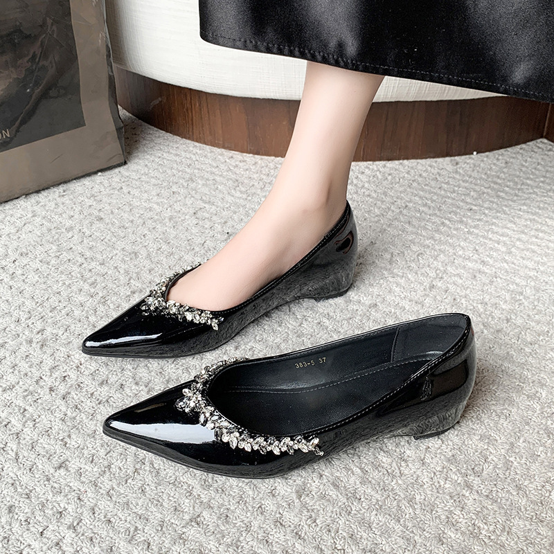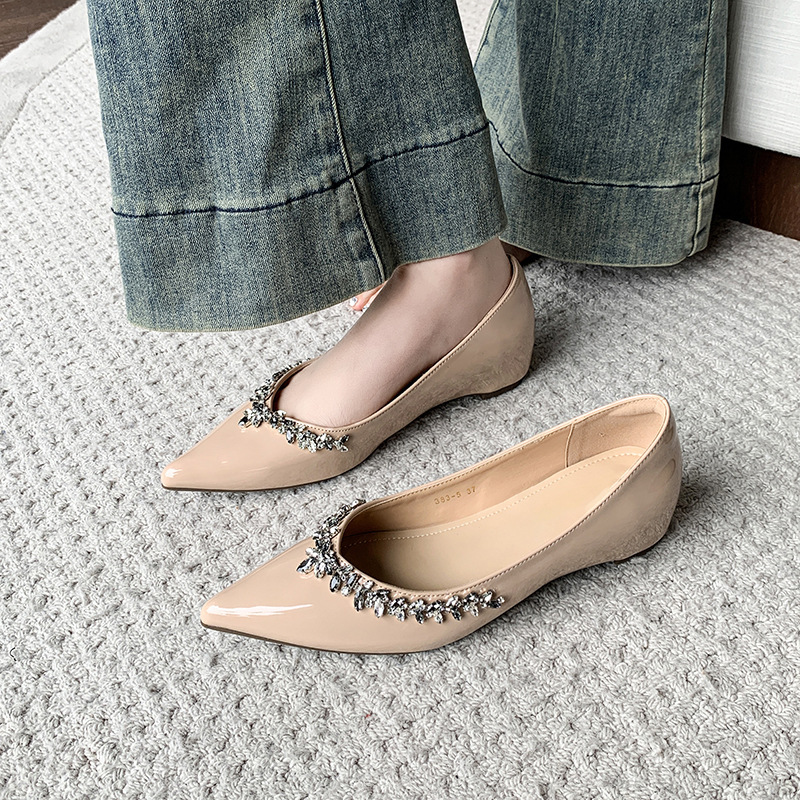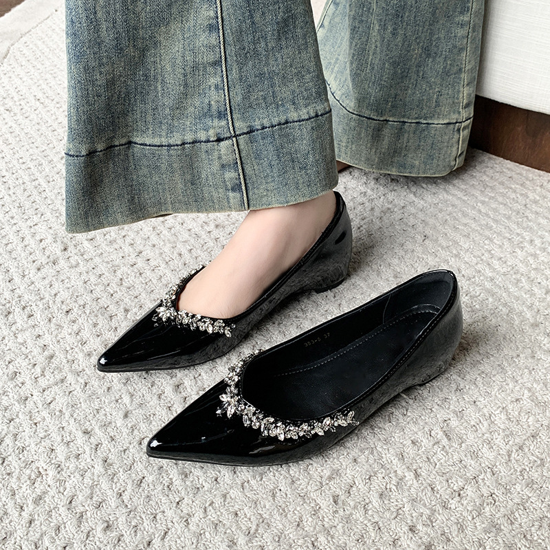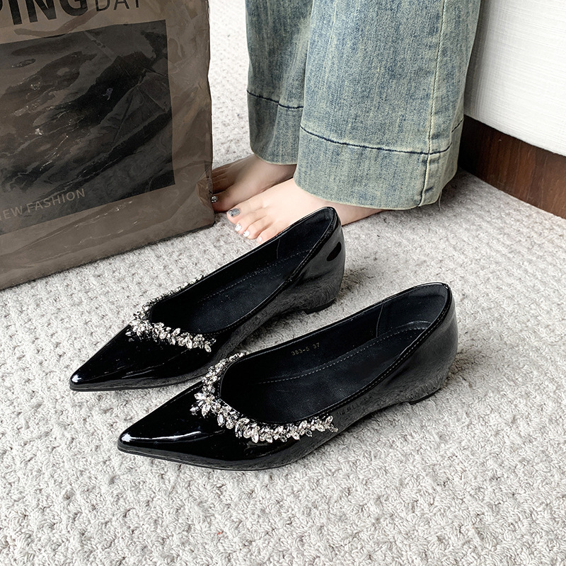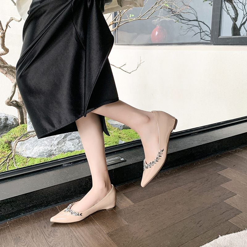 프랑스 스타일 아름다운 피곤하지 않은 발 신발 여성 2025 슈퍼 핫 새로운 스타일 우아한 뾰족한 평평한 무당 신발 검은 얕은 신발스토어 가기