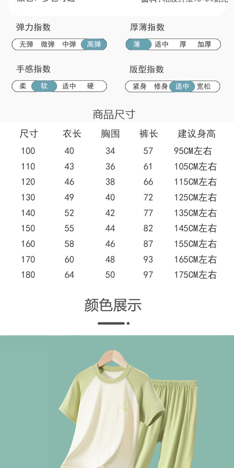 2025 여름 어린이 캔디 컬러 잠옷 투피스 세트 중대형 소년 소녀 반팔 바지 에어컨 가정복