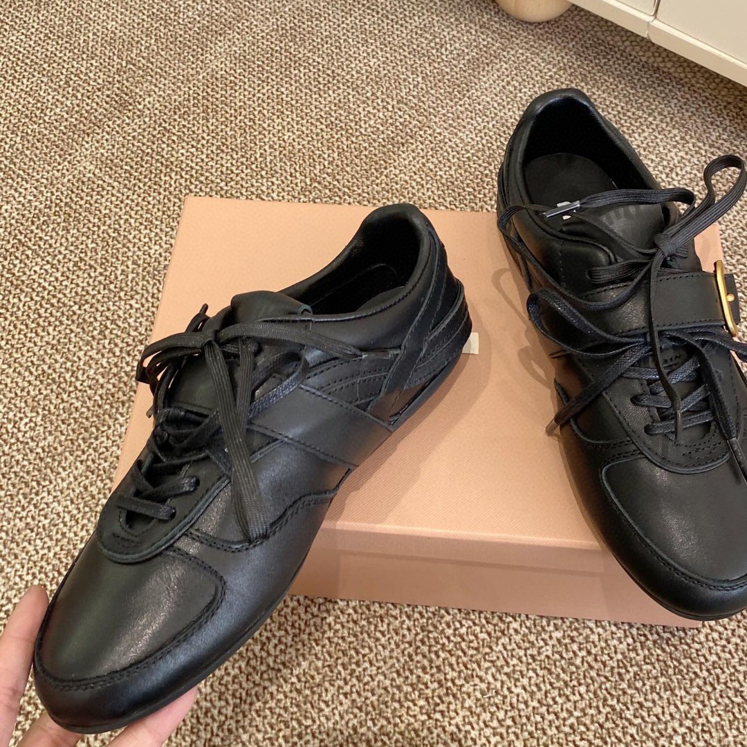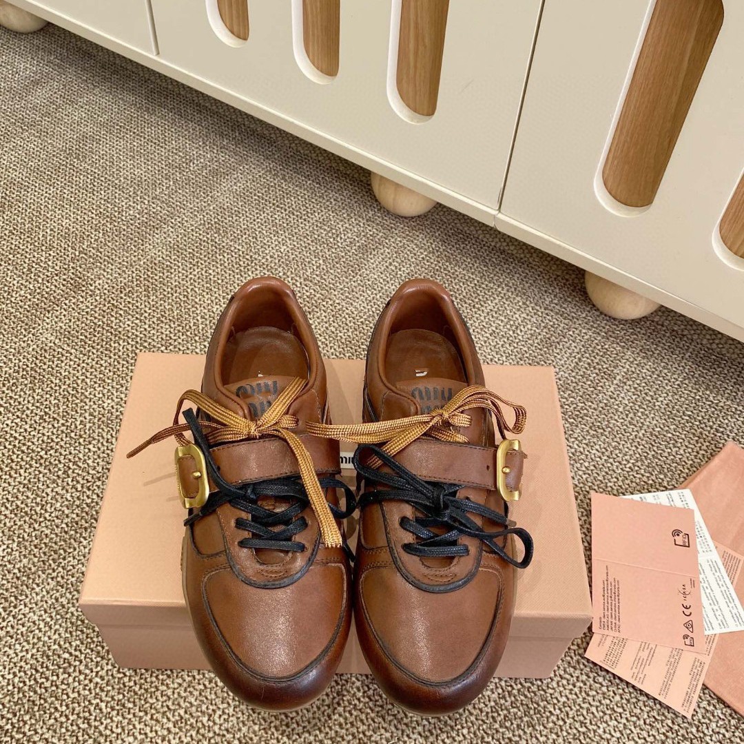 Gaoding 2025 대외 무역 새로운 복고풍 패션 캐주얼 버클 레이스 업 플랫 스포츠 가죽 신발 여성 신발 트렌디스토어 가기