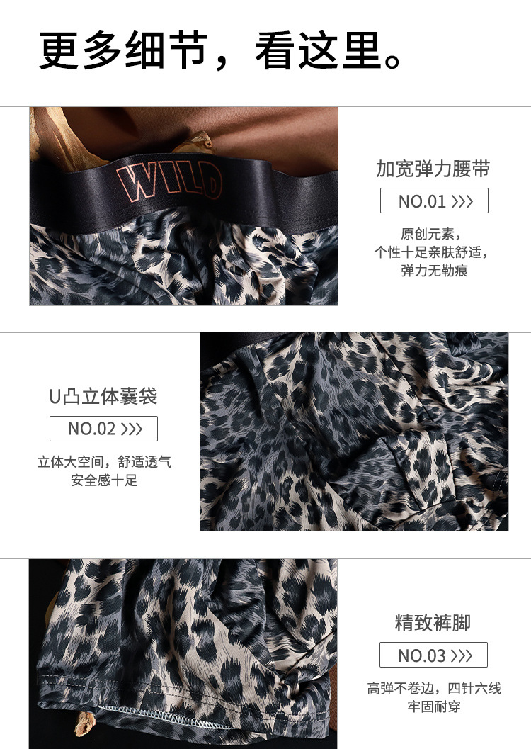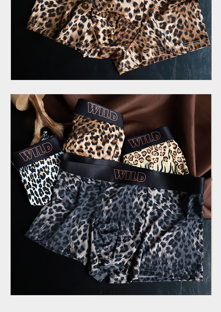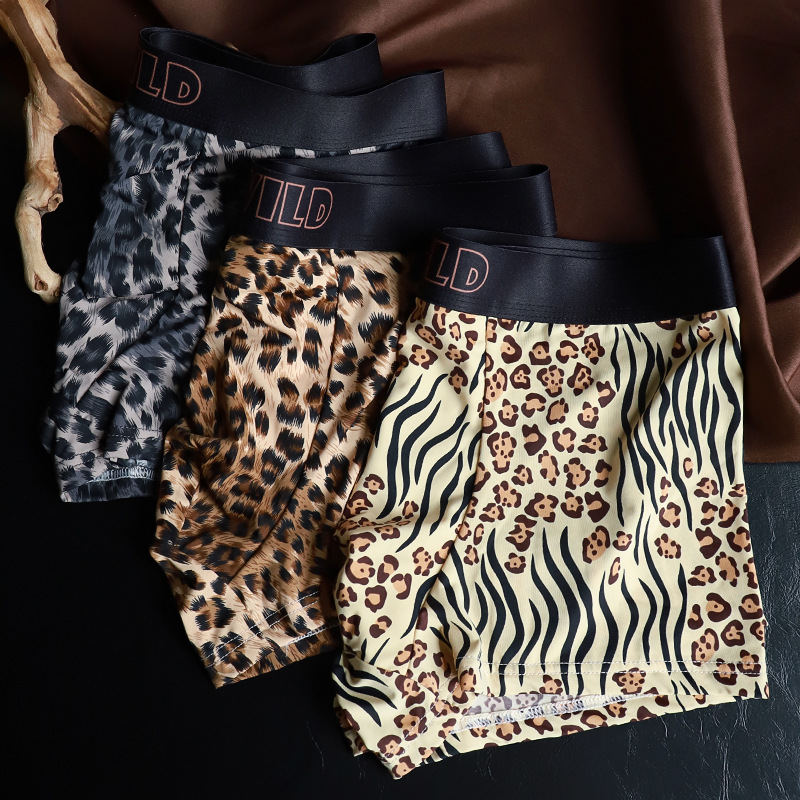 여러 새로운 남성용 아이스 실크 속옷, 남성용 섹시한 표범 무늬 복서 팬티, 남성용 맞춤형 패셔너블 통기성 반바지스토어 가기