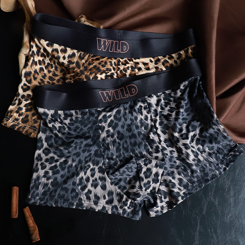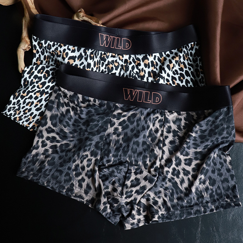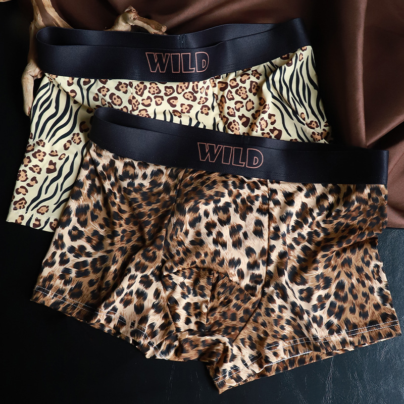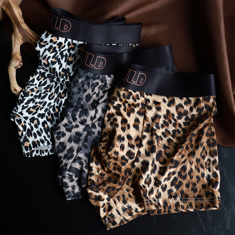 여러 새로운 남성용 아이스 실크 속옷, 남성용 섹시한 표범 무늬 복서 팬티, 남성용 맞춤형 패셔너블 통기성 반바지