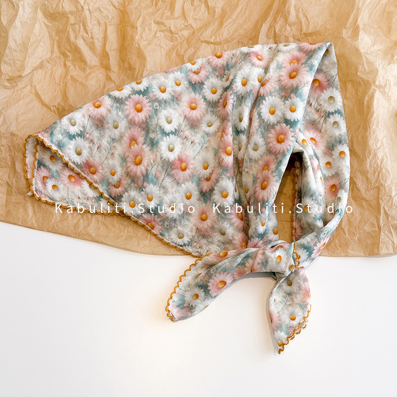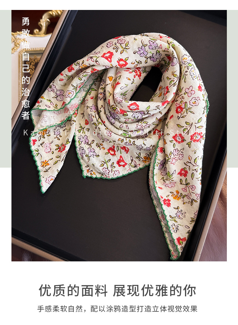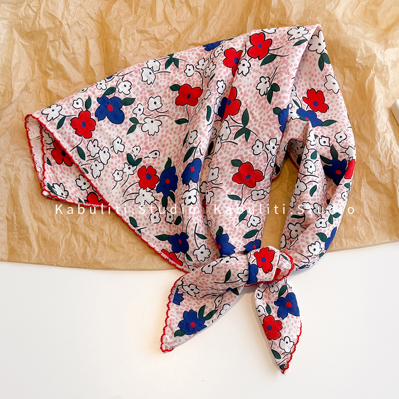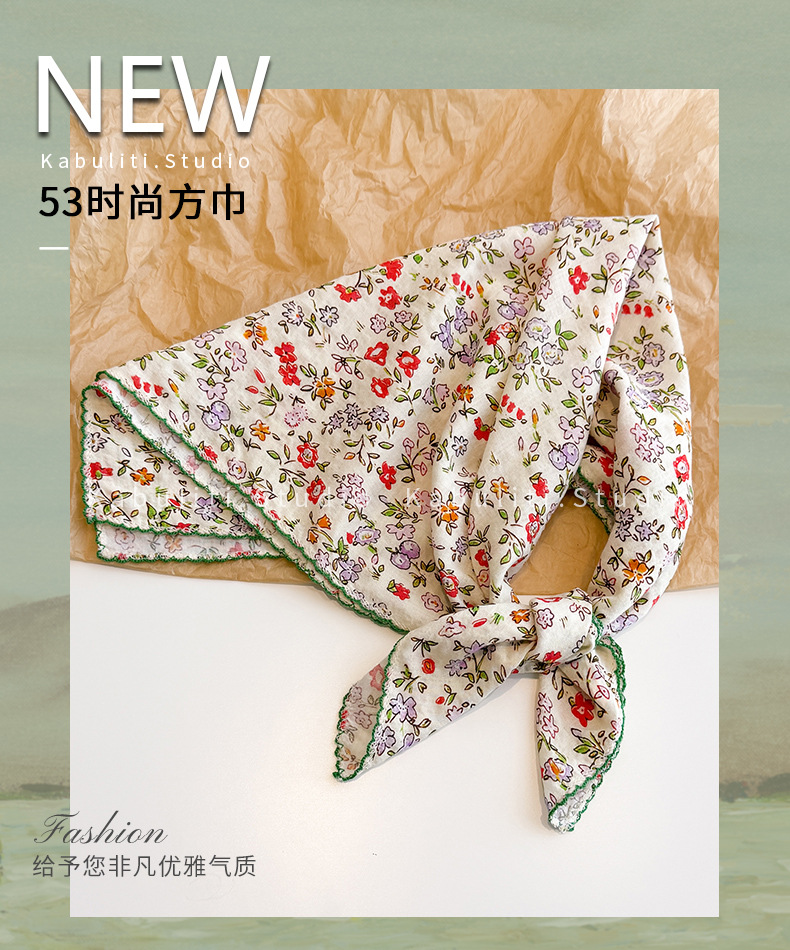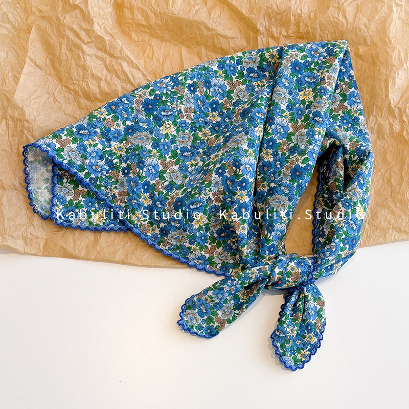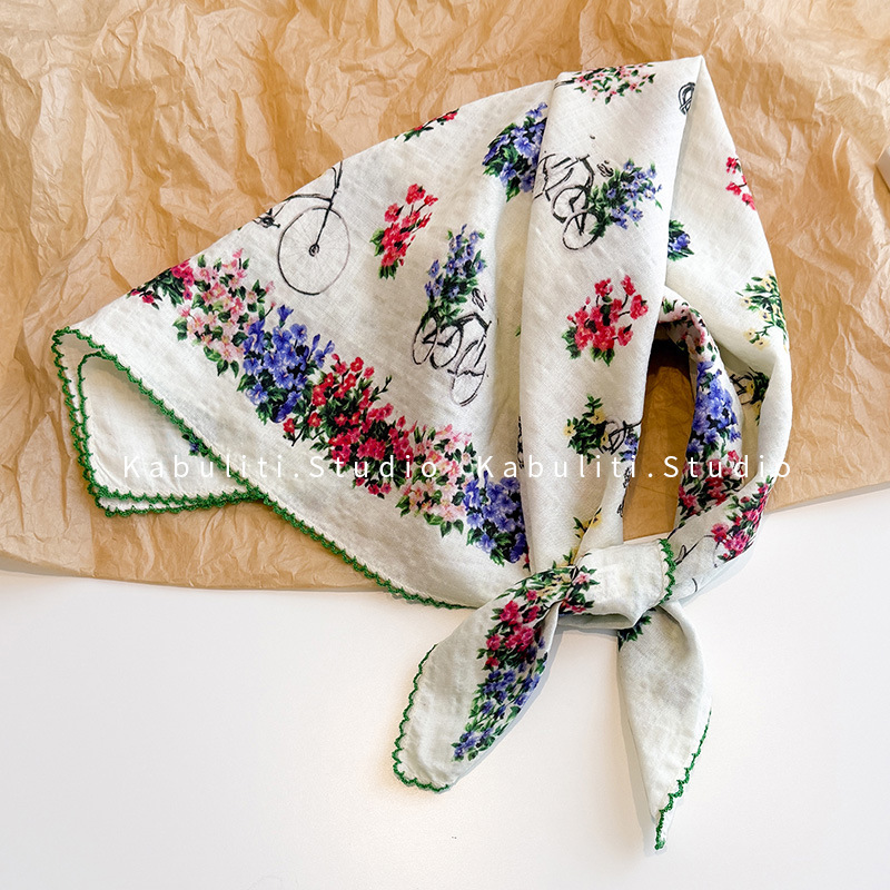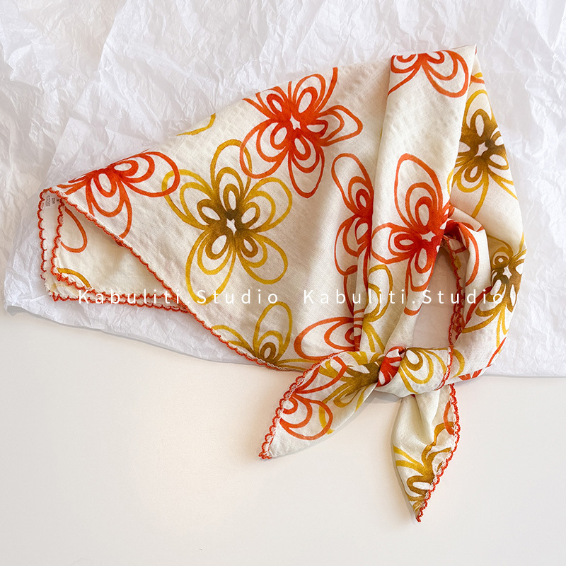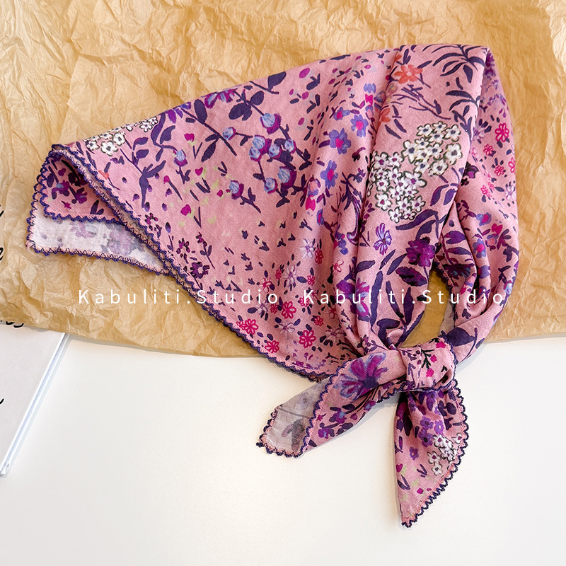 여성용 작은 사각형 스카프, 파란색 삼각형 스카프, 목 보호대, 면 스카프, 타이 염색 스카프, 장식용 운남 거즈 스카프, 얇은 스카프