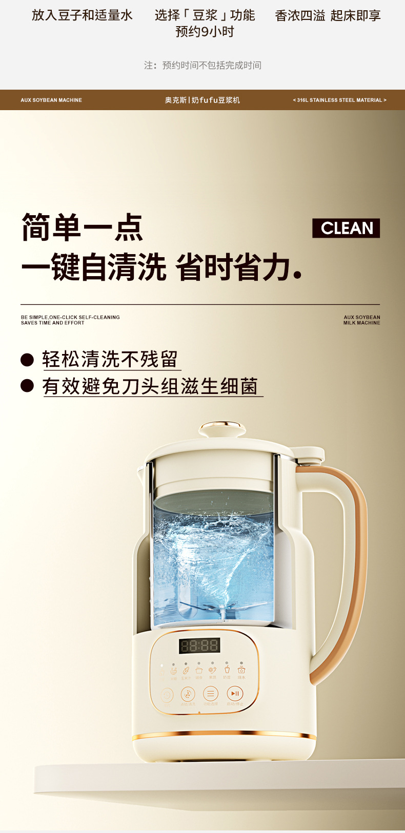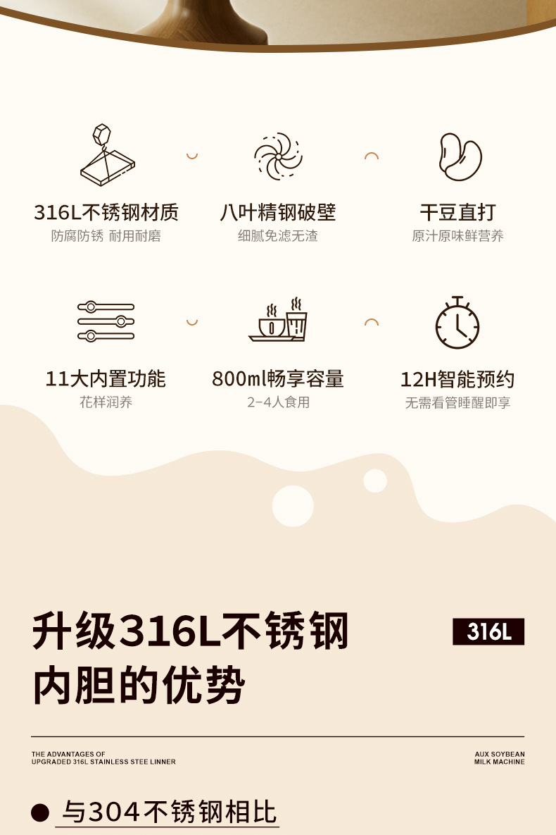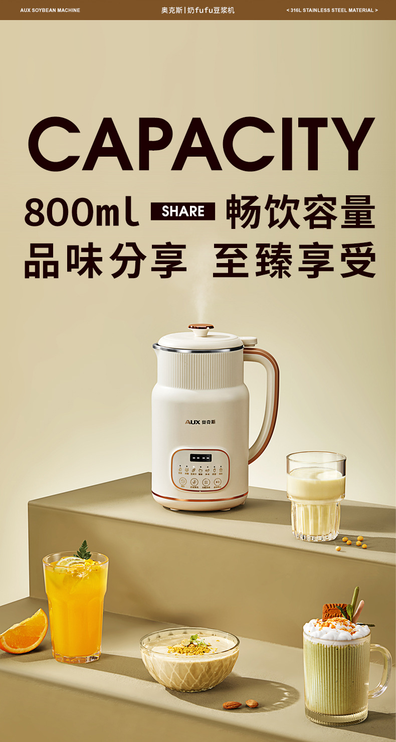• 크림화이트 800ml [업그레이드된 316 스테인레스 스틸] 두유기계