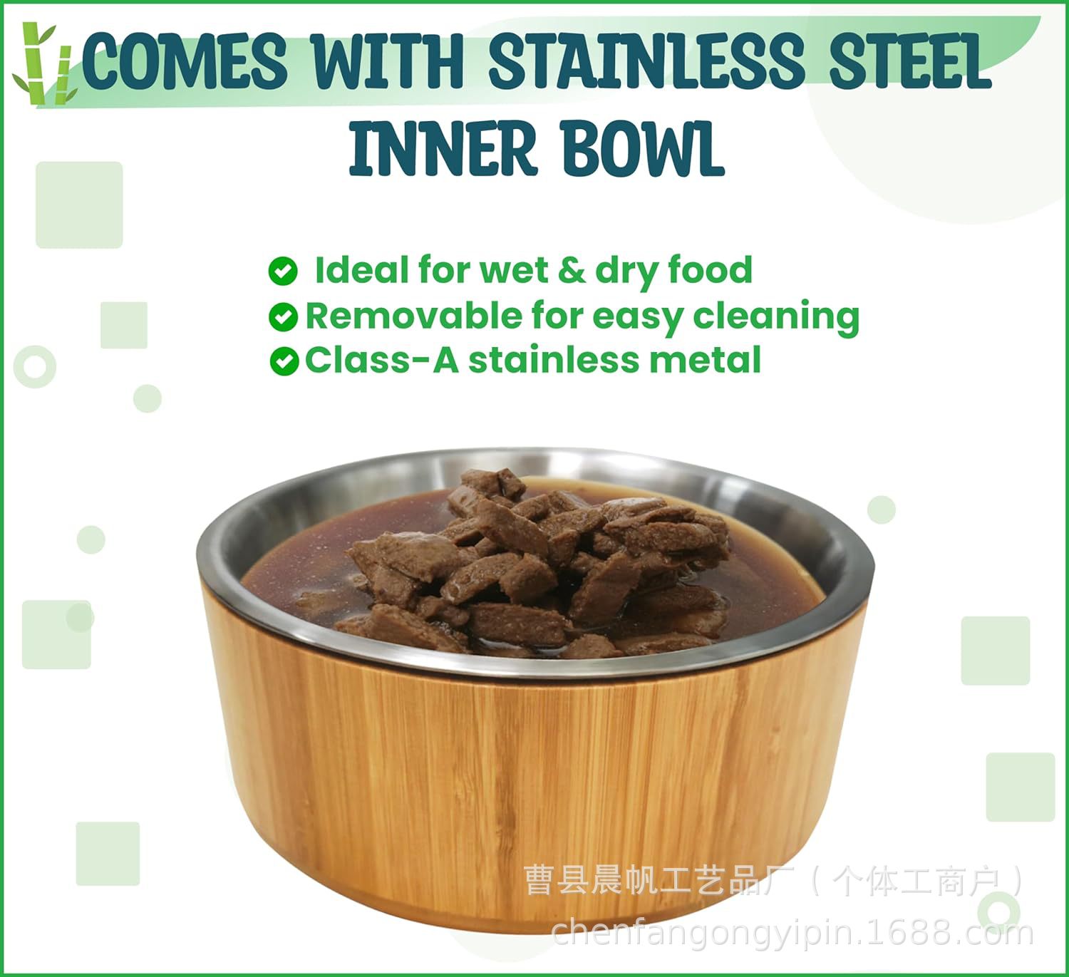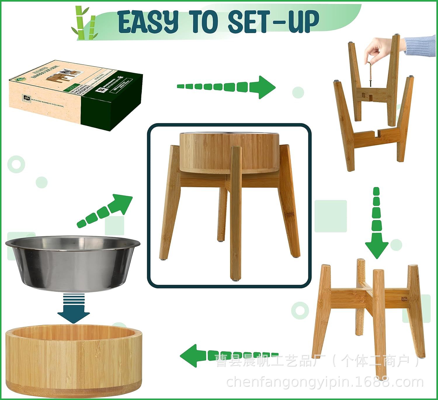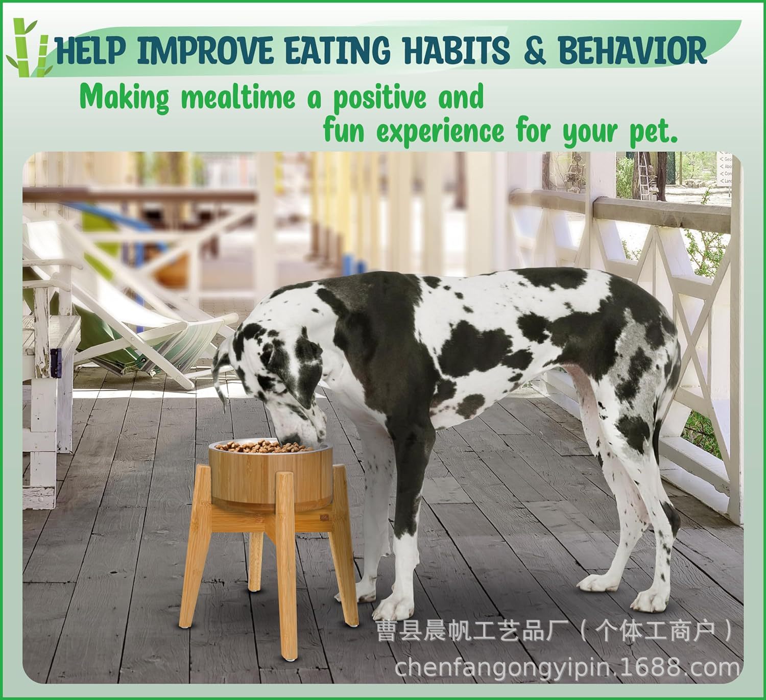 대나무 애완 동물 그릇 랙, 저녁 식사 접시 랙, 고양이와 개 먹이 및 물, 창의적인 가정용 단일 그릇 먹이 그릇, 대형 개 먹이통스토어 가기