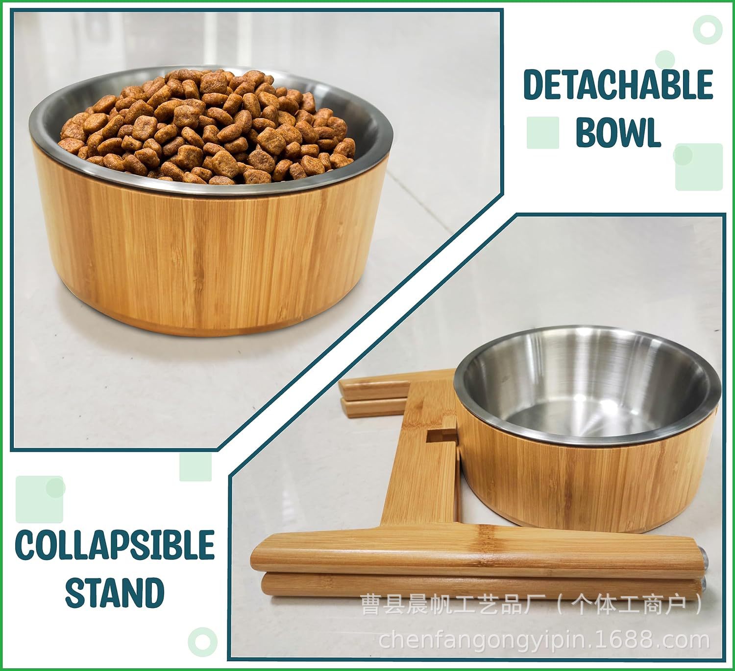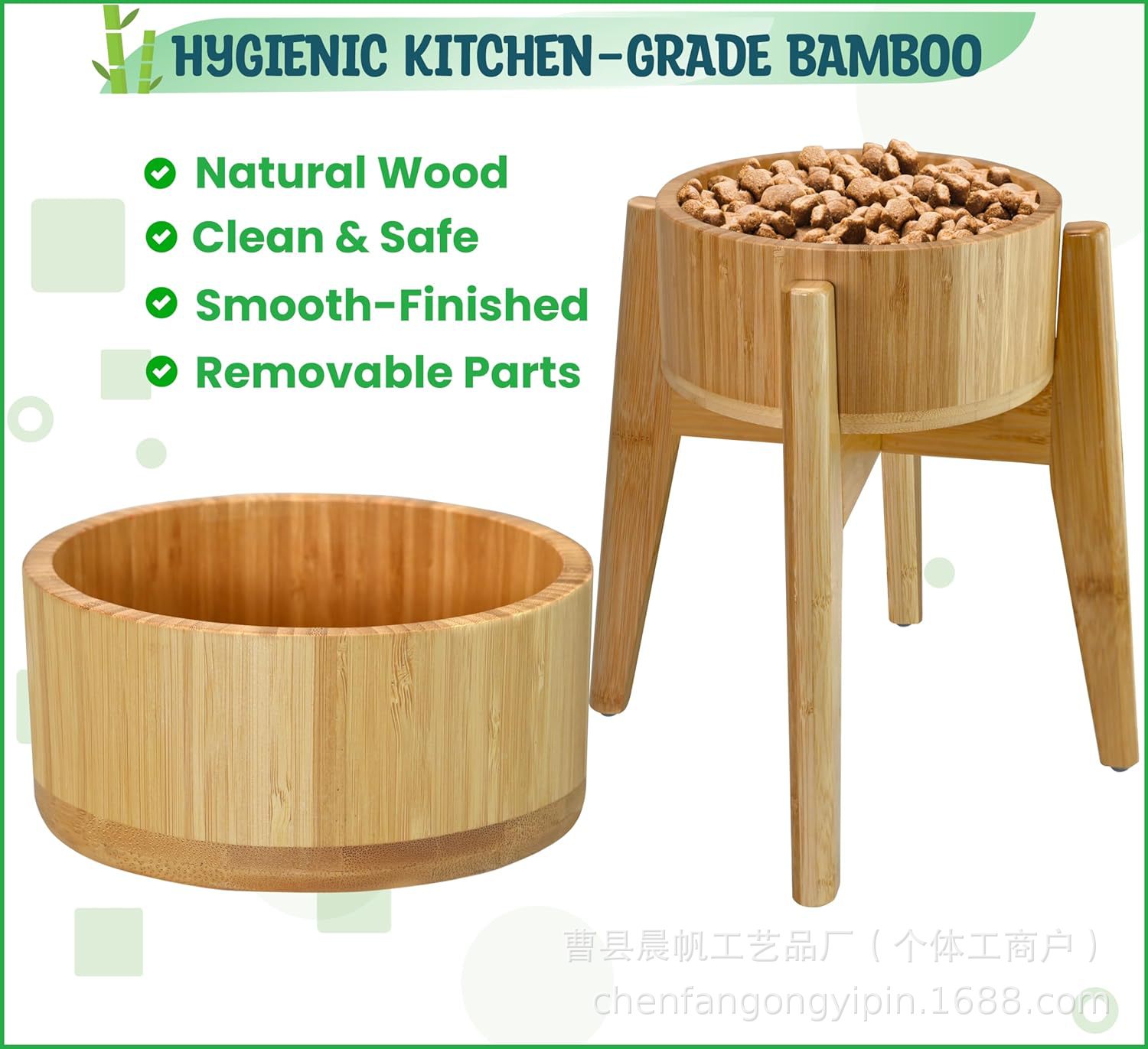 대나무 애완 동물 그릇 랙, 저녁 식사 접시 랙, 고양이와 개 먹이 및 물, 창의적인 가정용 단일 그릇 먹이 그릇, 대형 개 먹이통