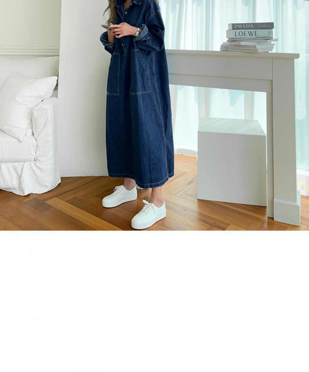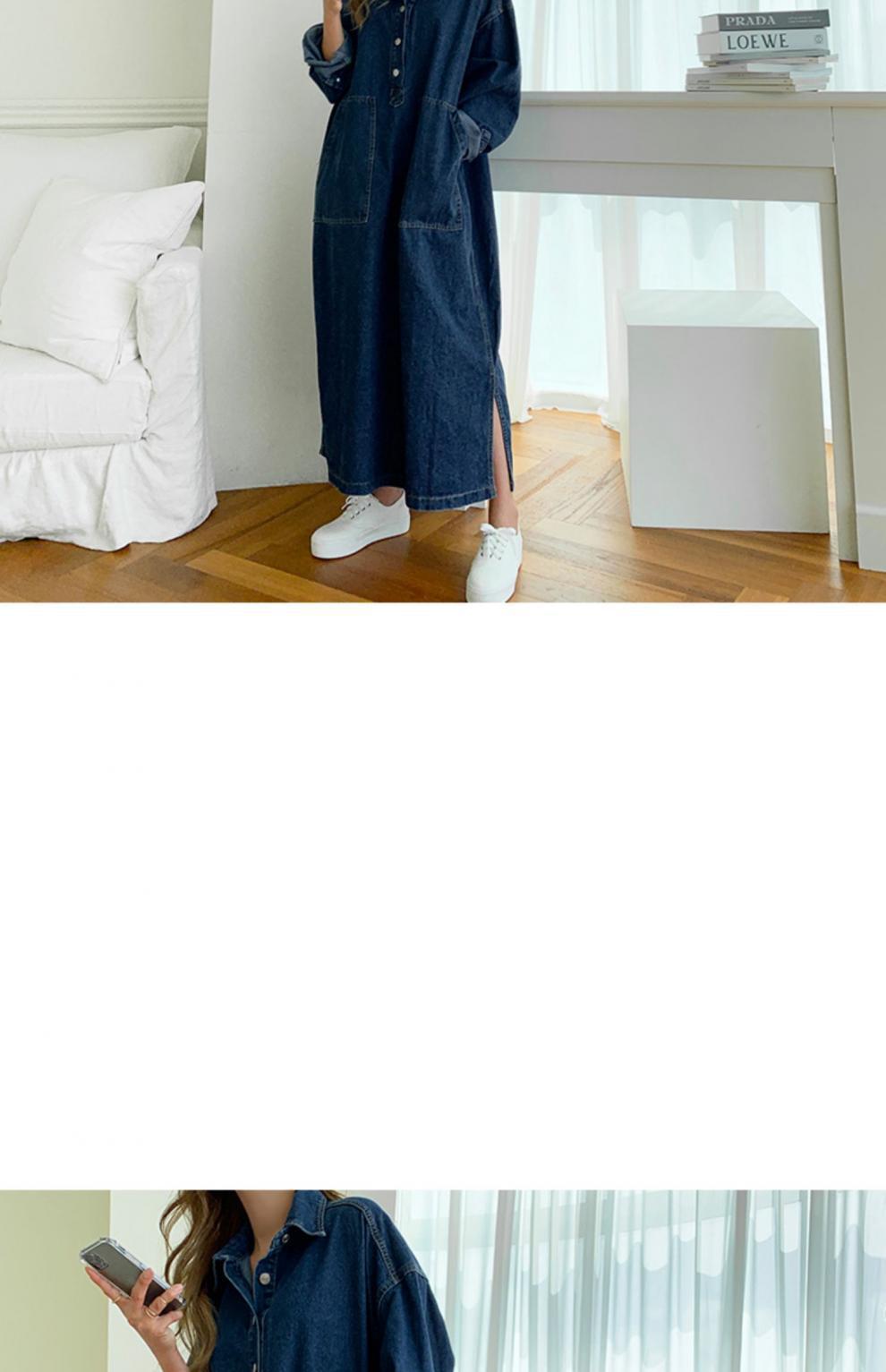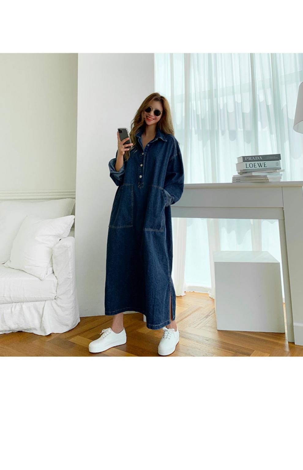 2025 뉴 데님 한국 복고풍 루즈한 대형 게으른 스타일 연령 감소 라펠 슬릿 작업복 드레스