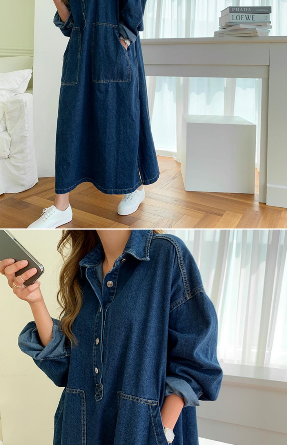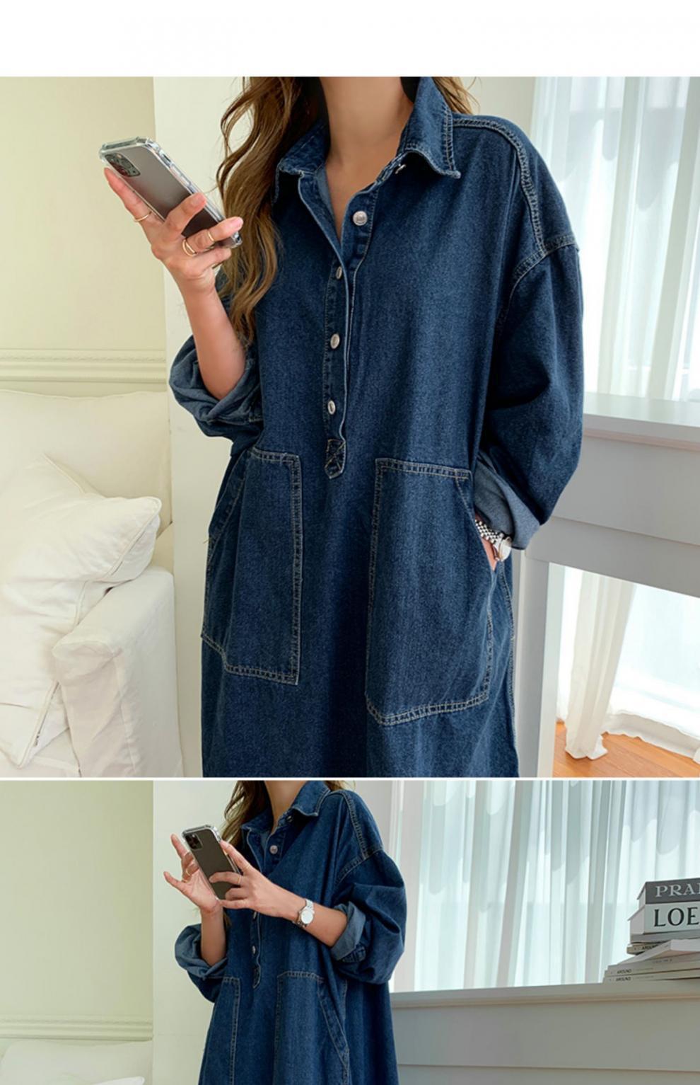 2025 뉴 데님 한국 복고풍 루즈한 대형 게으른 스타일 연령 감소 라펠 슬릿 작업복 드레스스토어 가기