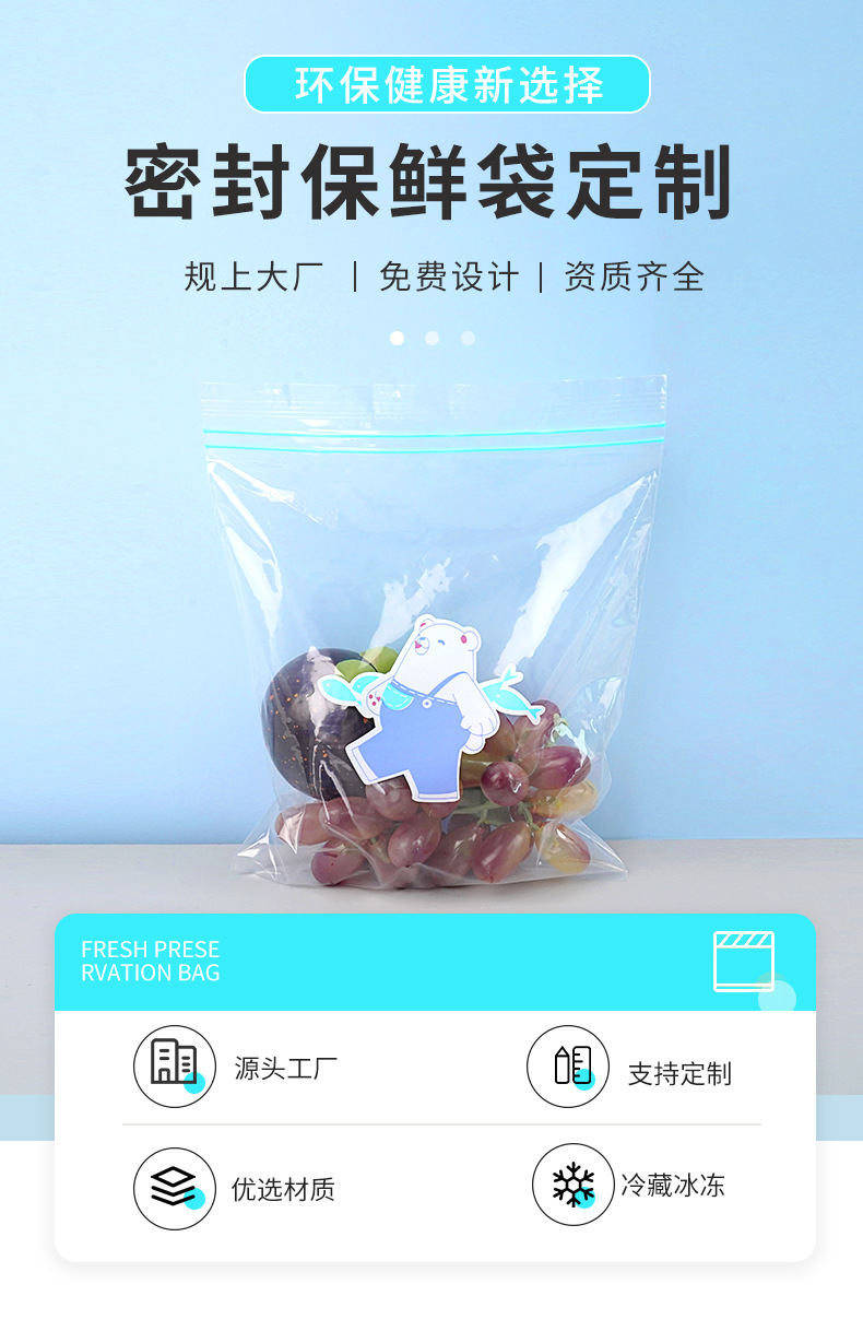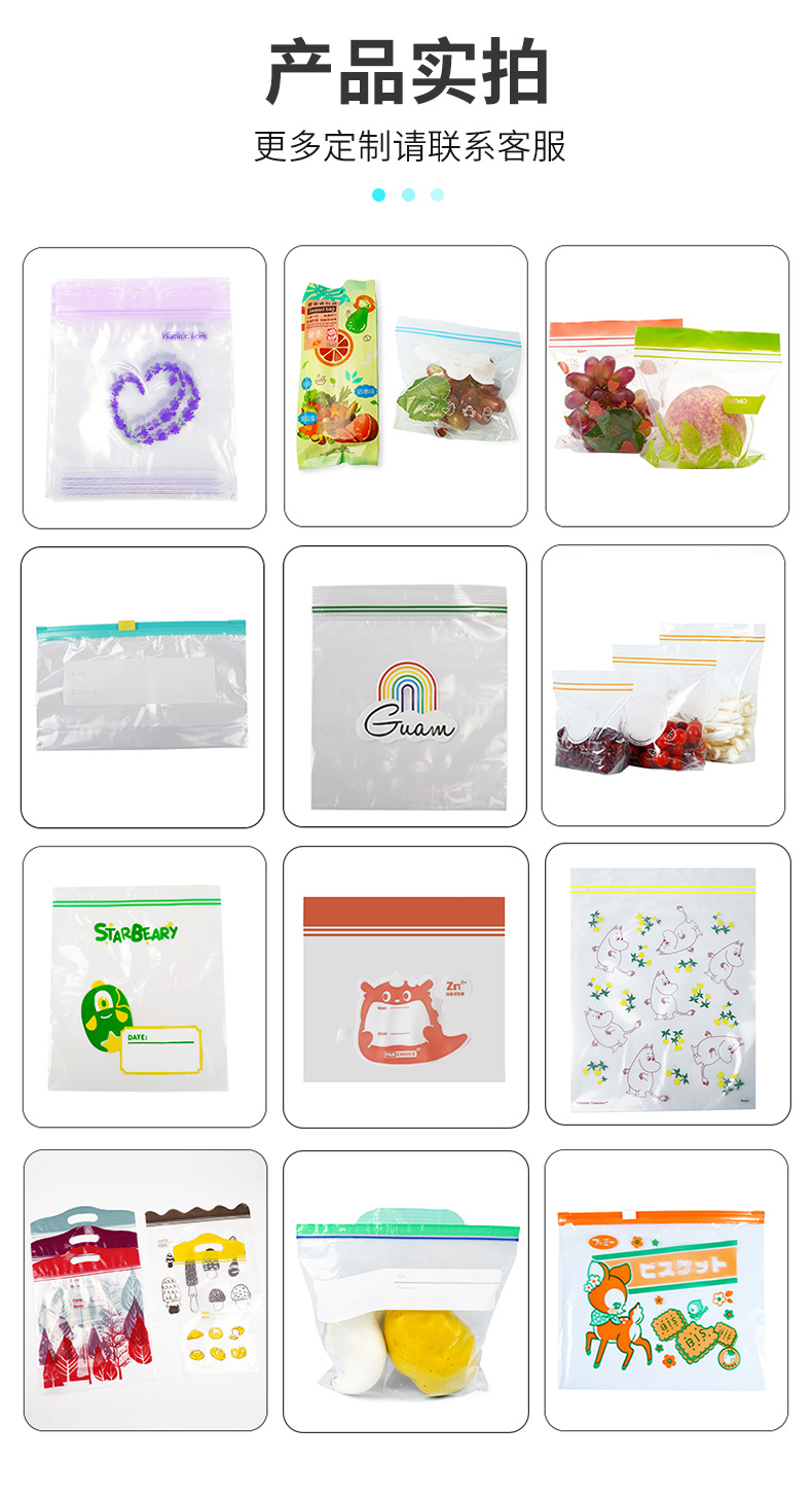 맞춤형 패턴 식품 투명 신선 유지 가방 PE 뼈 가방 냉장고 가정용 식품 포장 가방 PE 지퍼 잠금 가방 사용자 정의스토어 가기