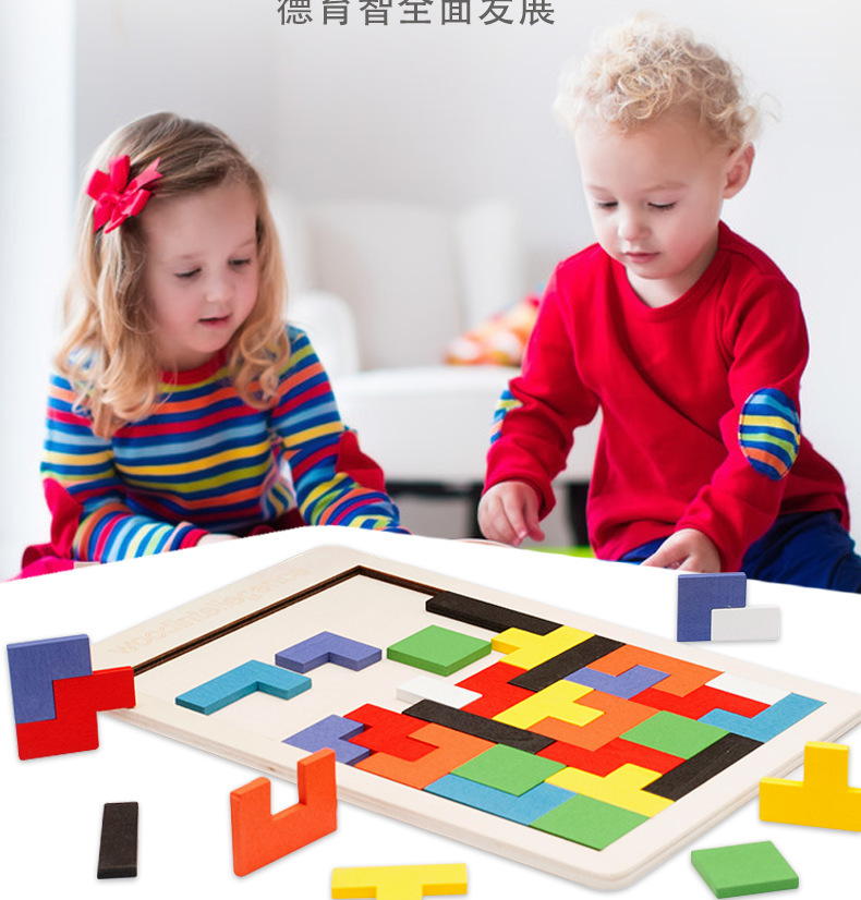 나무로 만든 어린이 조기 교육용 테트리스 퍼즐 기하학적 블록 지능 개발 교육용 장난감 남아 여아용 조립식 장난감