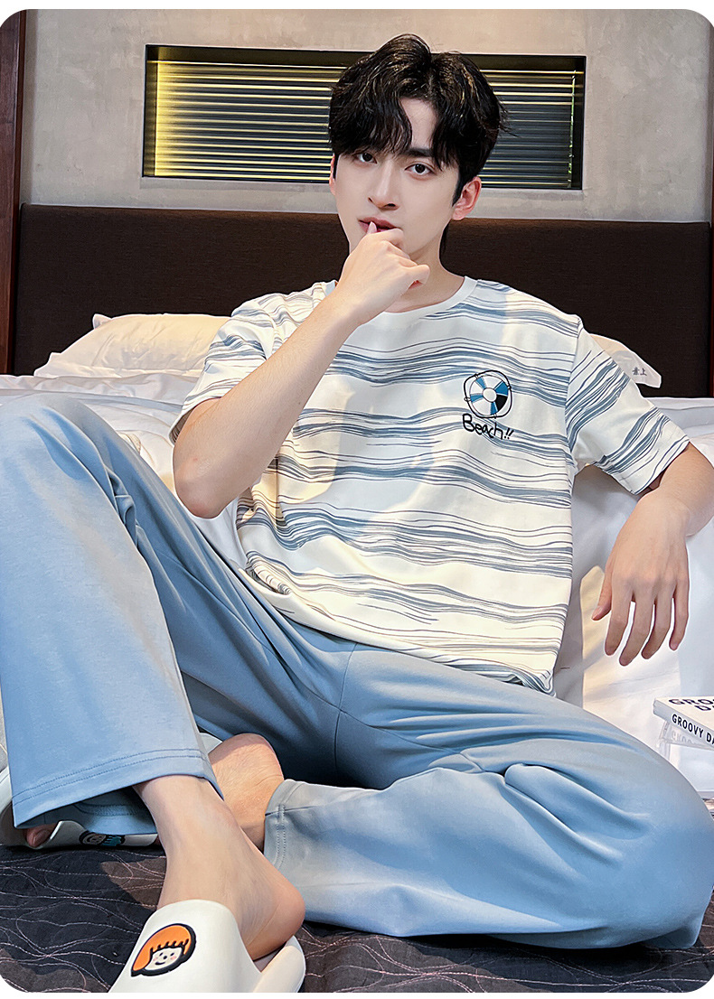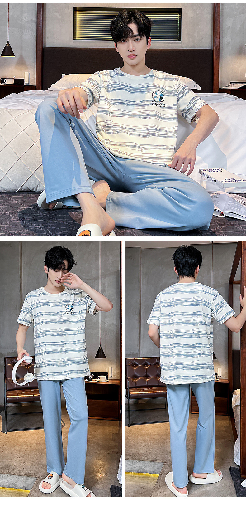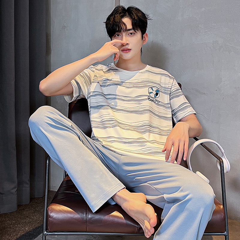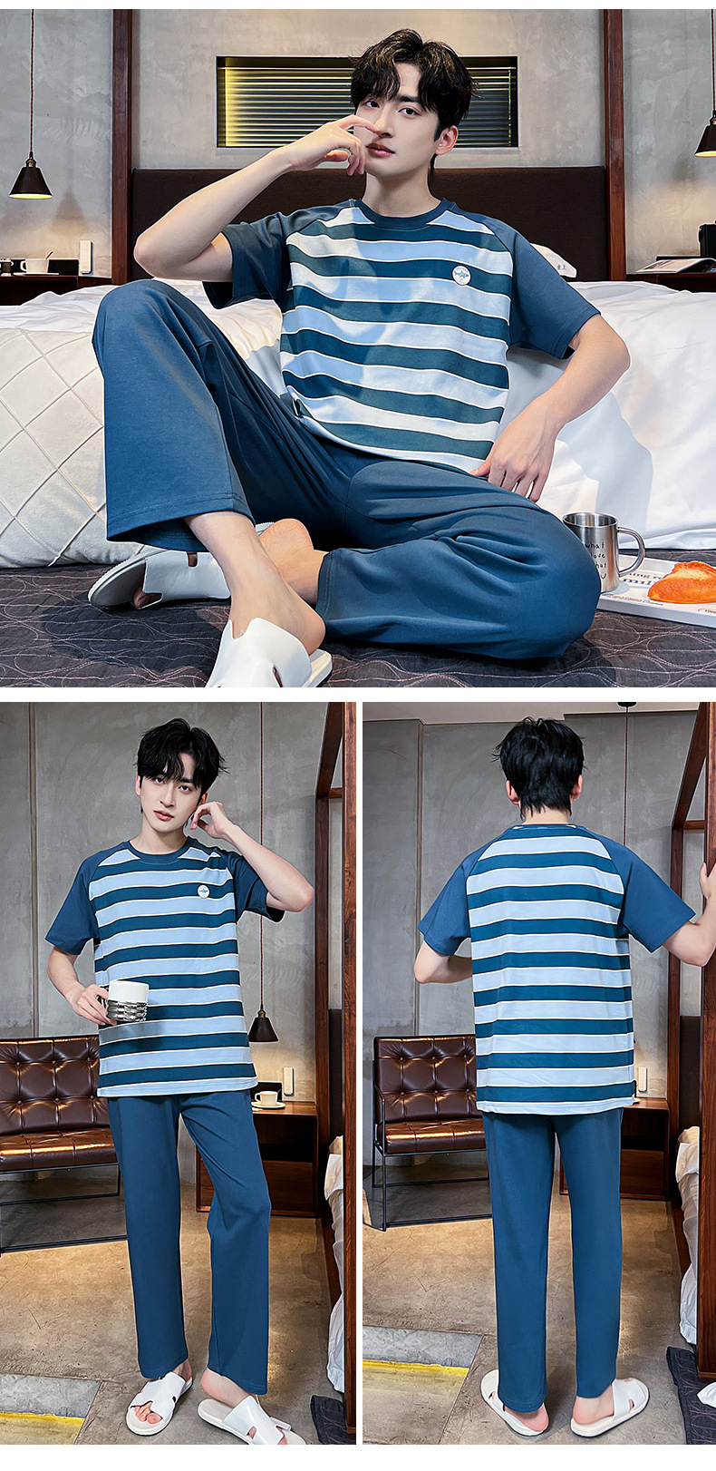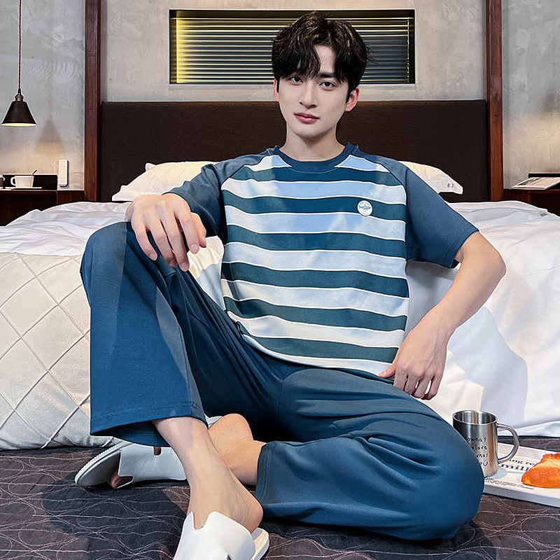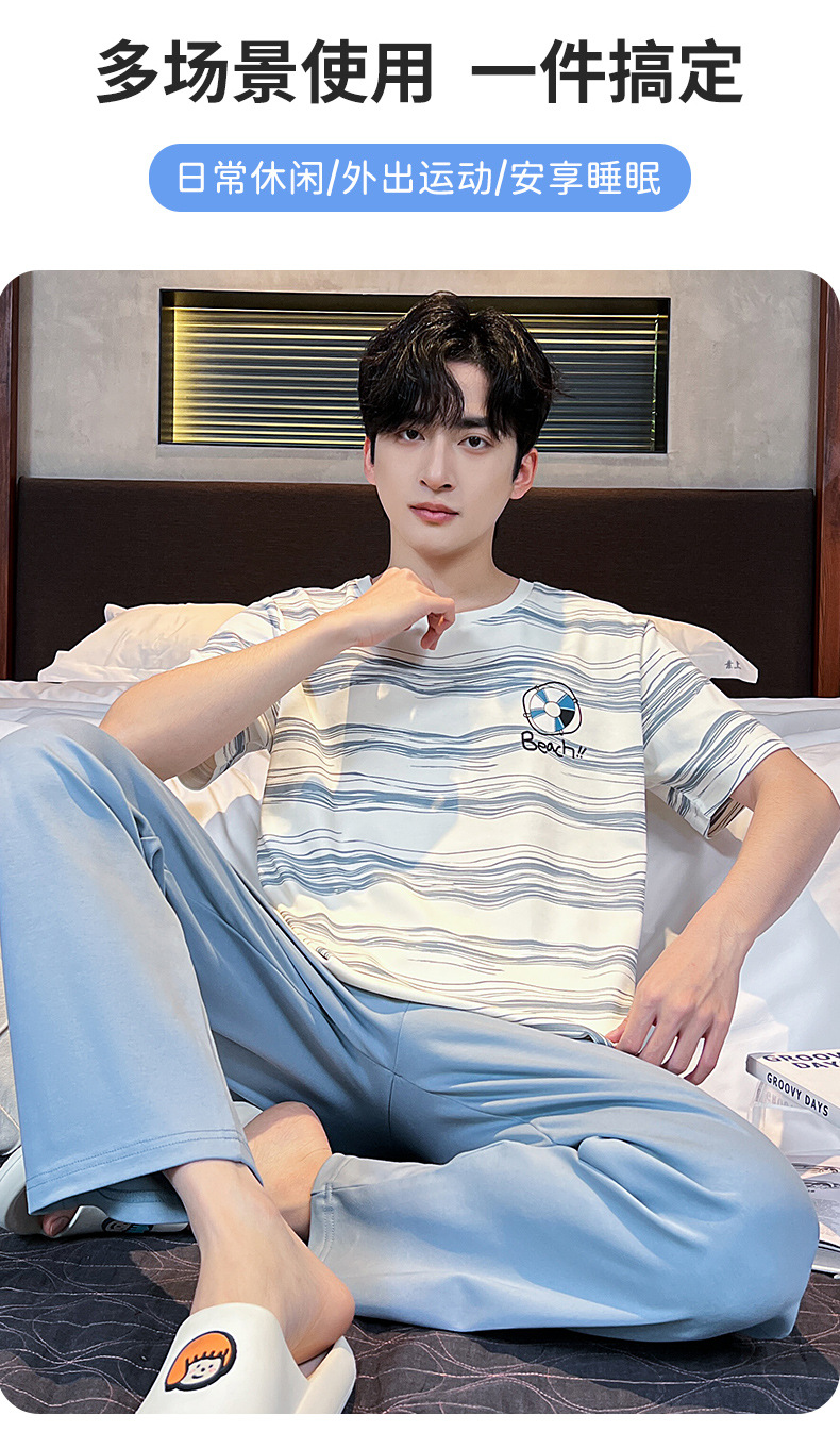 Mulong Shijia 여름 새로운 반팔 바지 느슨한 플러스 사이즈 편안한 순면 풀오버 파자마 남성 홈 의류 세트스토어 가기