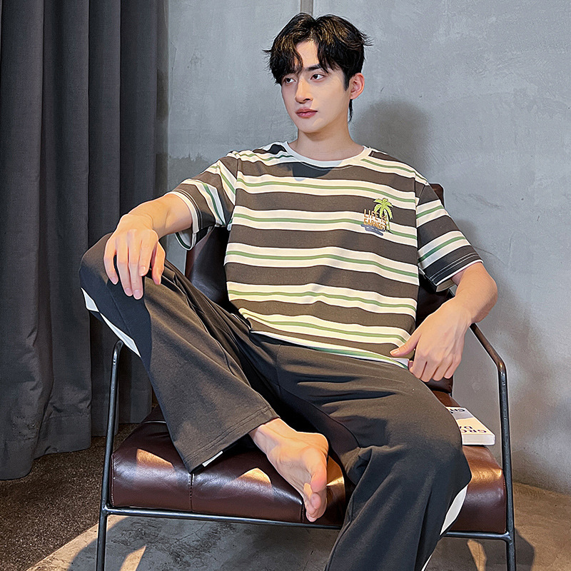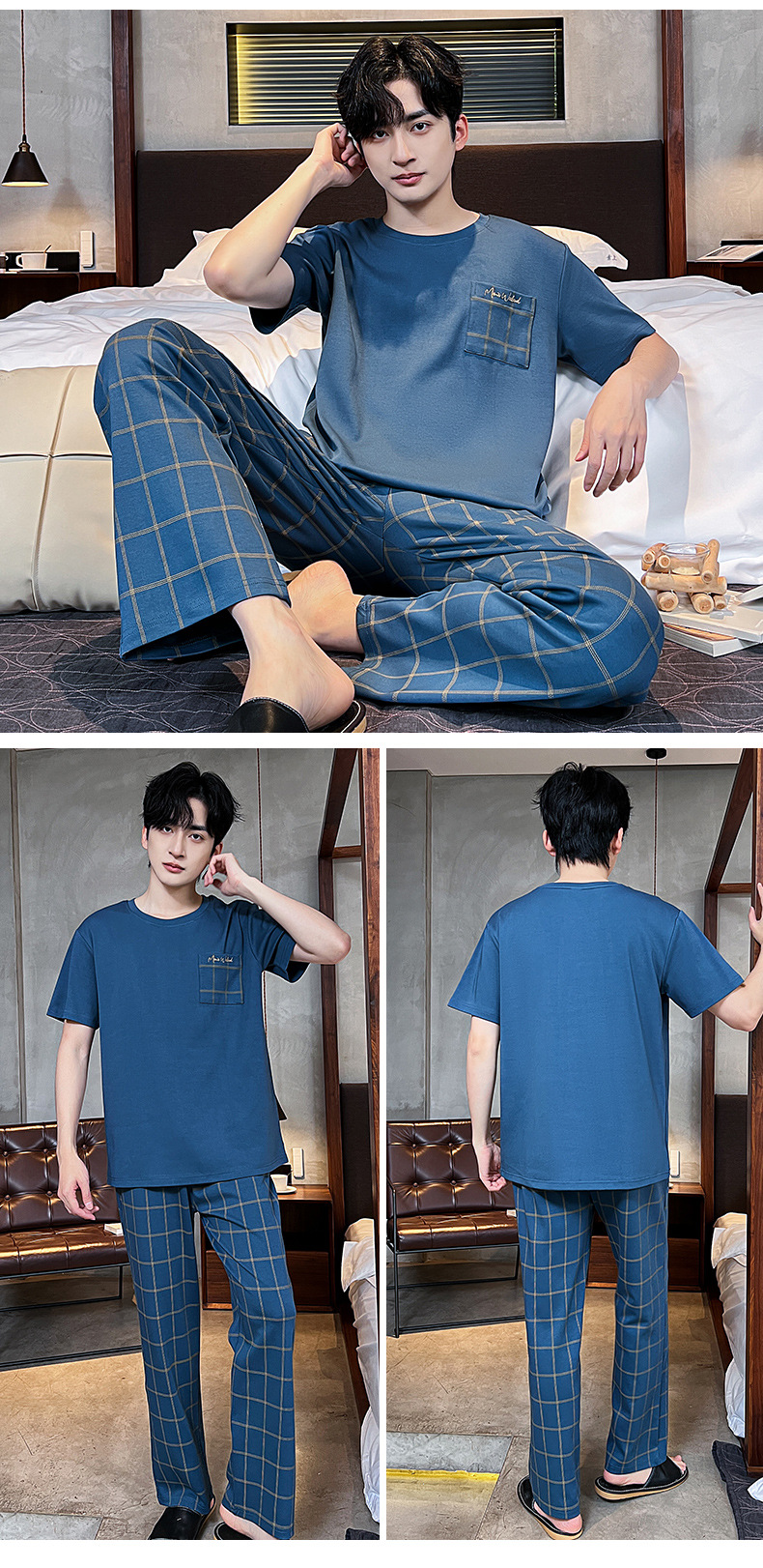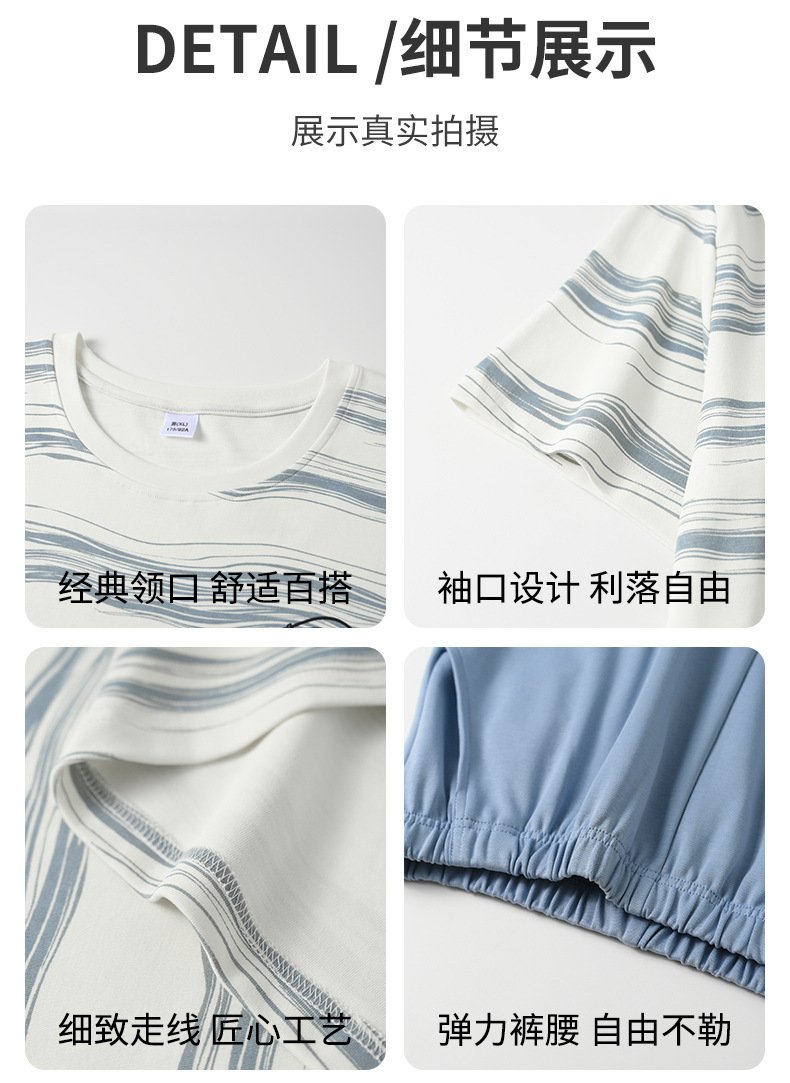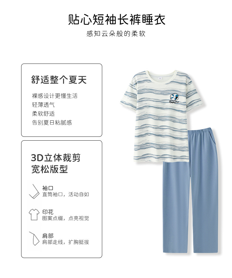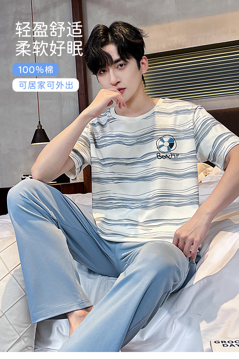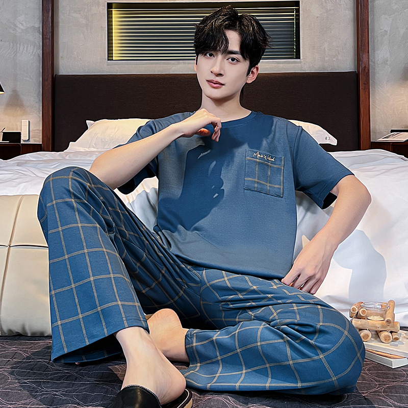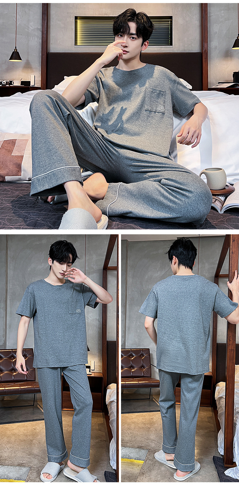 Mulong Shijia 여름 새로운 반팔 바지 느슨한 플러스 사이즈 편안한 순면 풀오버 파자마 남성 홈 의류 세트스토어 가기