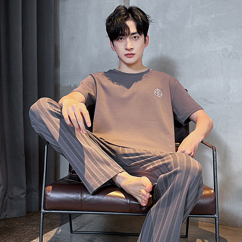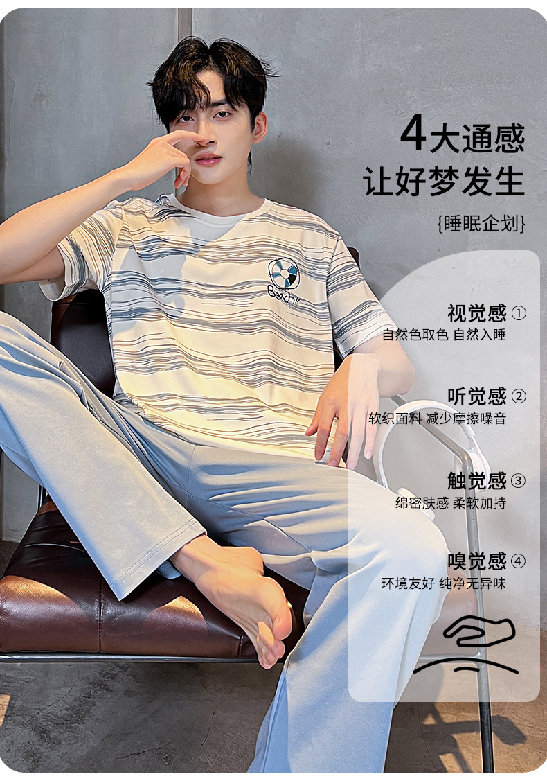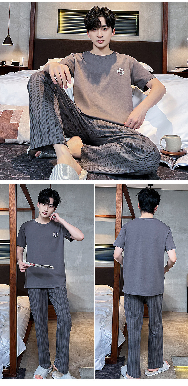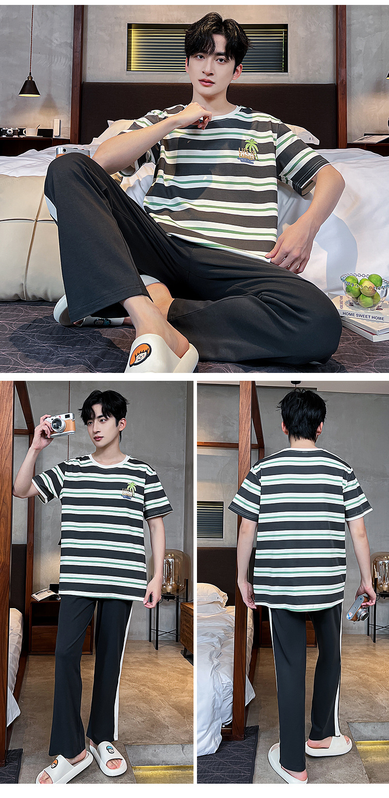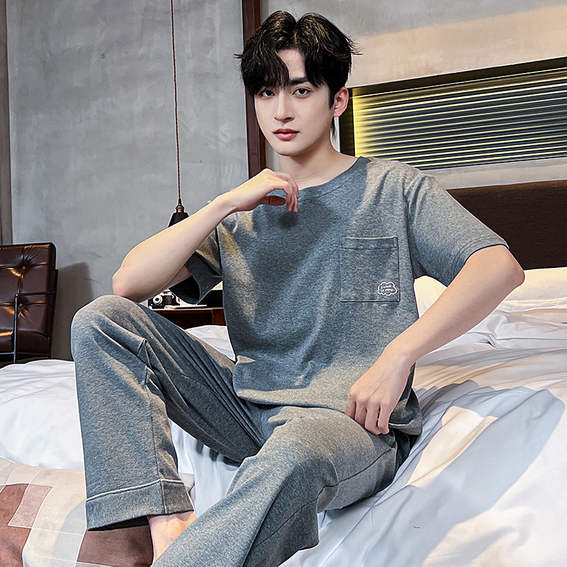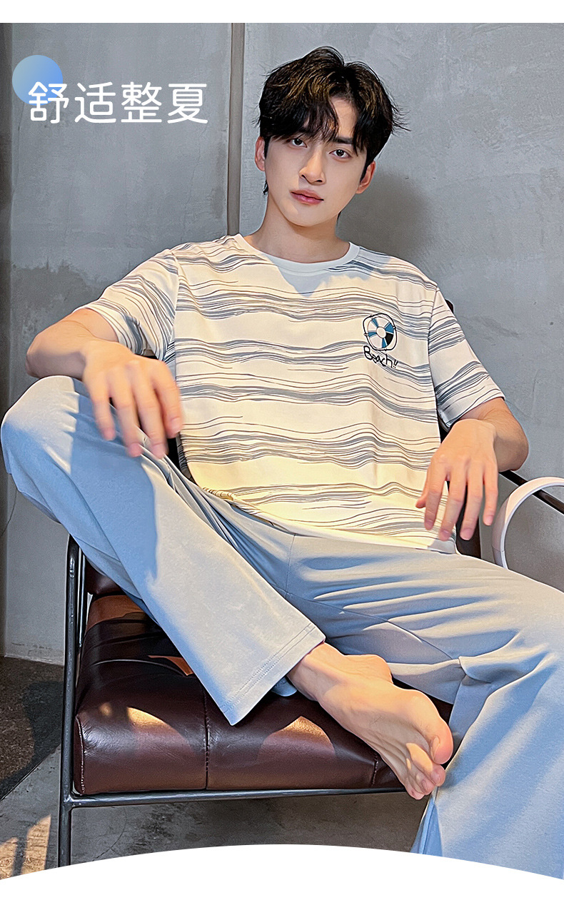 Mulong Shijia 여름 새로운 반팔 바지 느슨한 플러스 사이즈 편안한 순면 풀오버 파자마 남성 홈 의류 세트스토어 가기