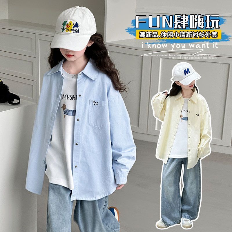 여아용 닥스훈트 셔츠 재킷 2025 봄 신작 중대형 아동용 긴팔 탑 캐주얼 봄 셔츠스토어 가기