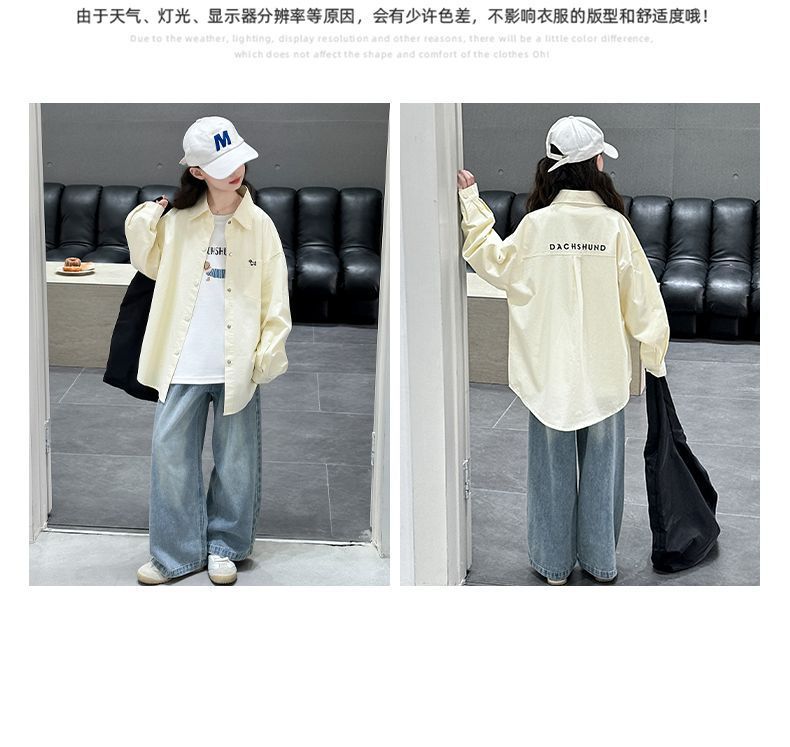 여아용 닥스훈트 셔츠 재킷 2025 봄 신작 중대형 아동용 긴팔 탑 캐주얼 봄 셔츠