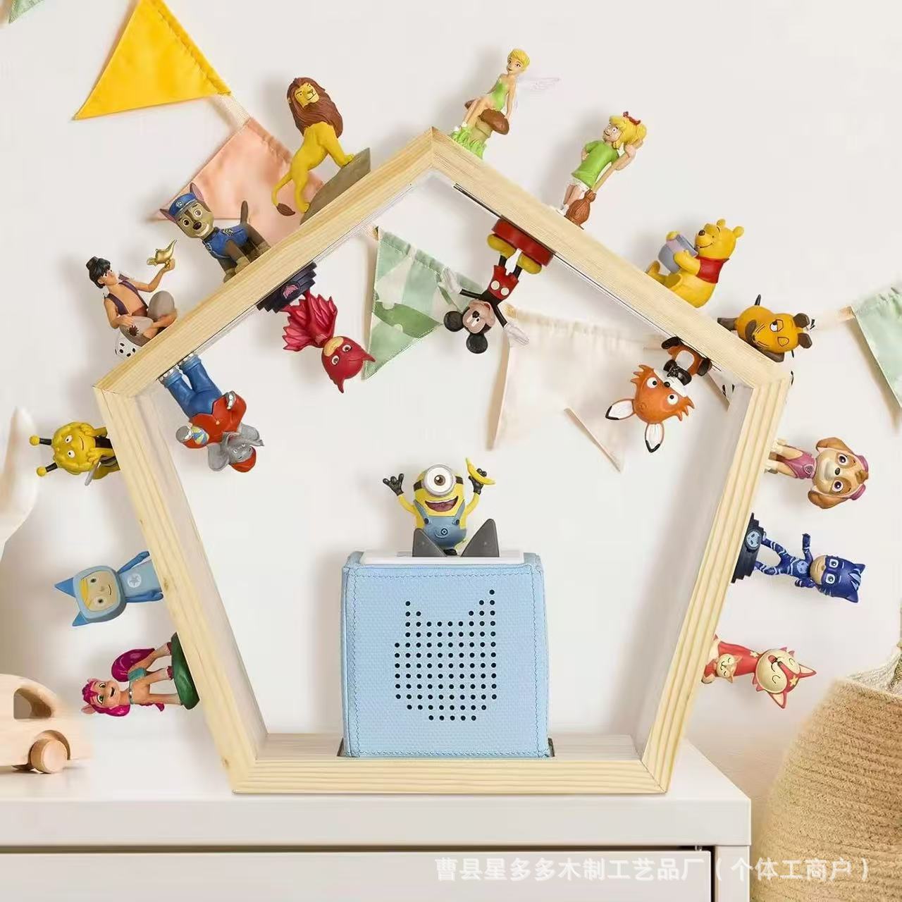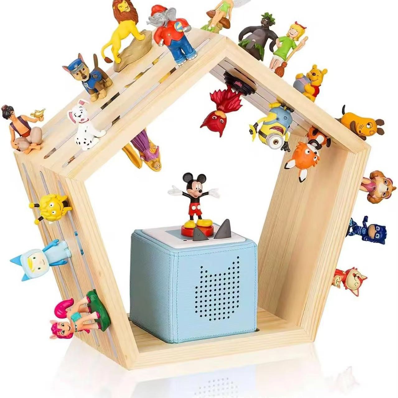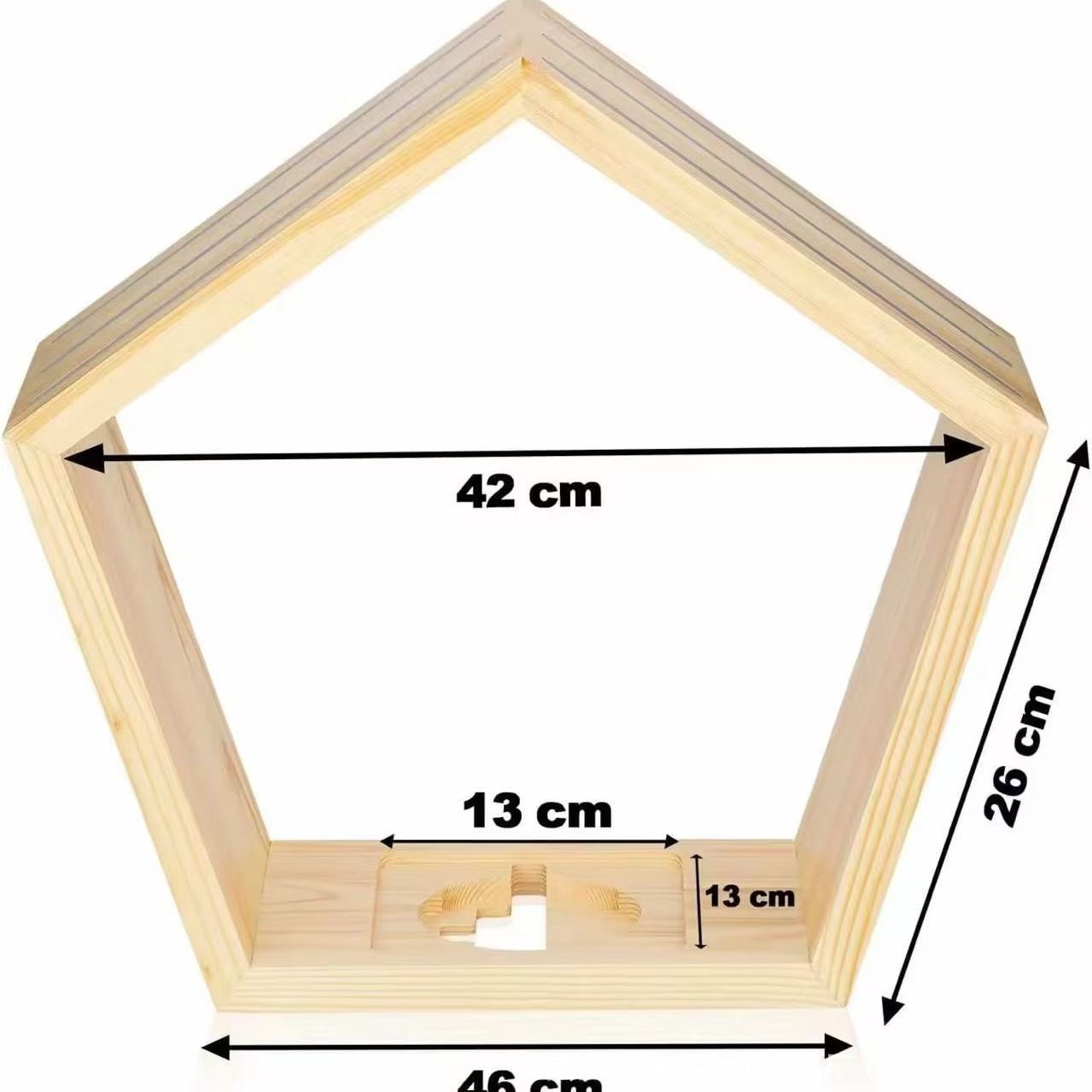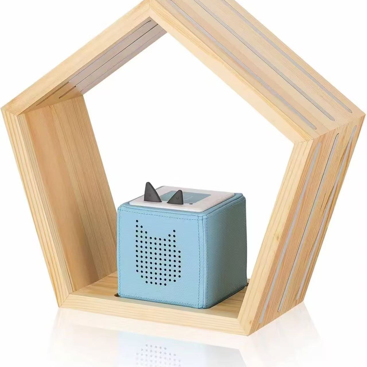 북유럽 단단한 나무 어린이 손으로 만든 오디오 자기 스토리지 랙 거실 벽걸이 형 육각형 벽 장식 스토리지 랙스토어 가기