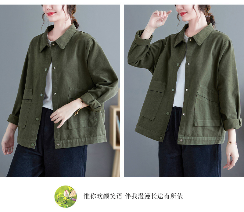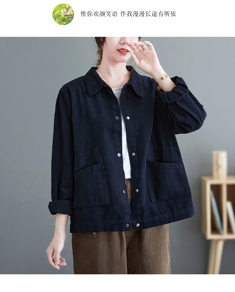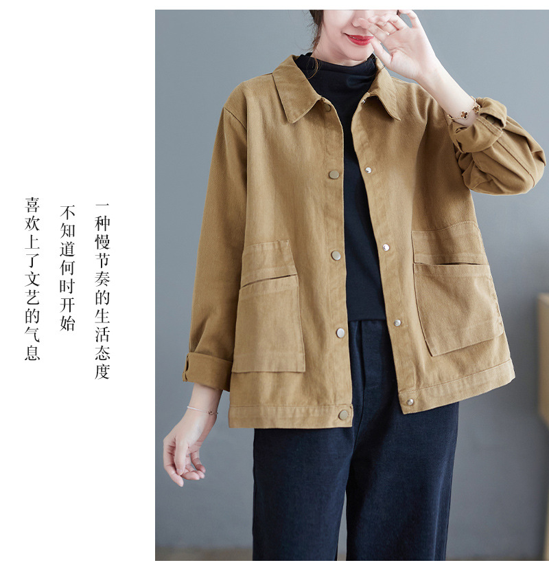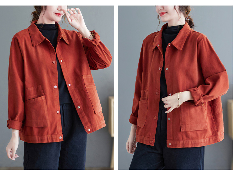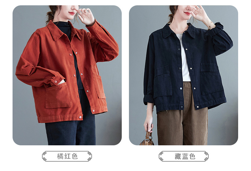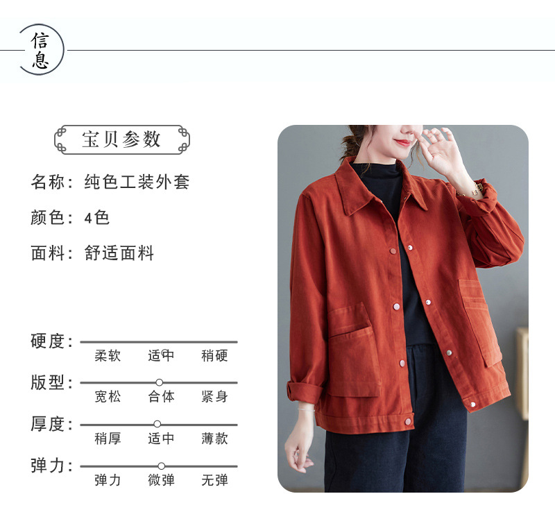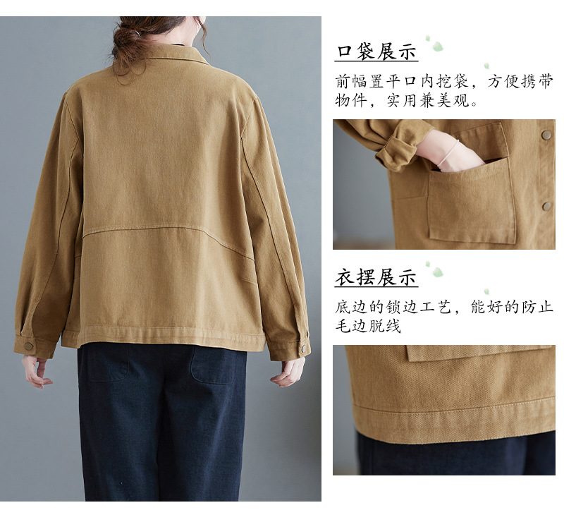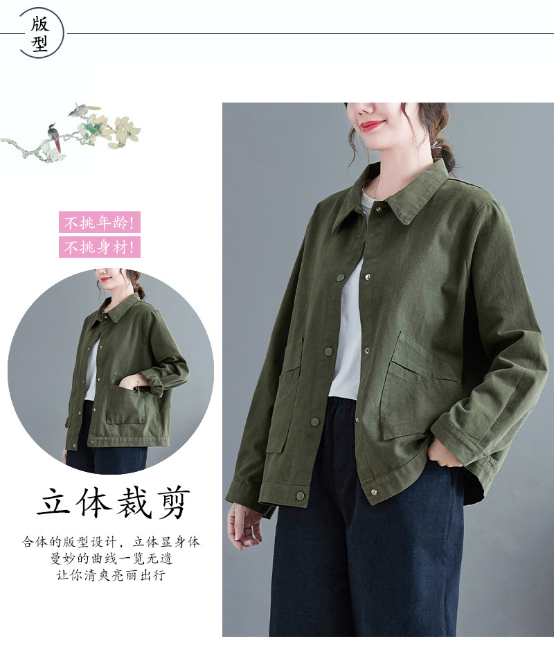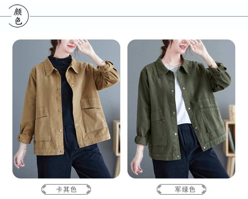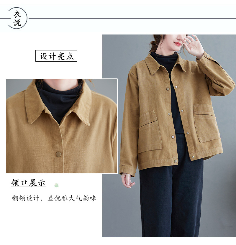 워시드 코튼 솔리드 컬러 워크웨어 숏 자켓 여성용 2025 가을 신상품 통근 심플 빅사이즈 캐주얼 자켓 라펠스토어 가기