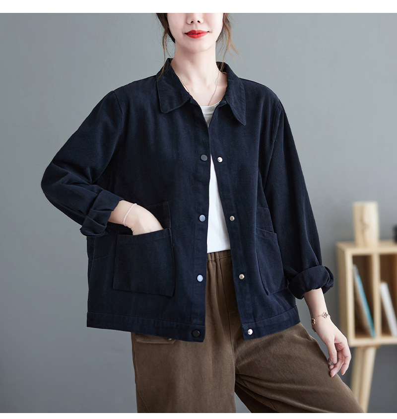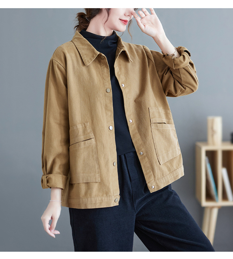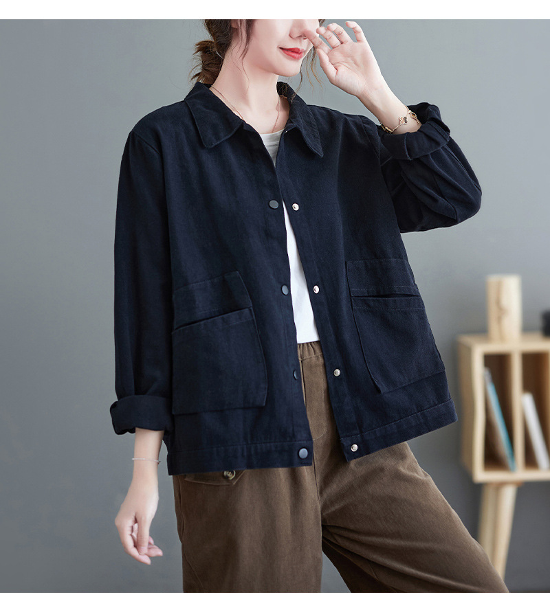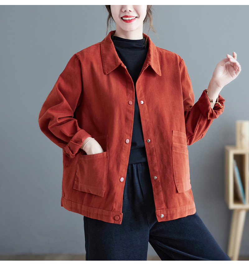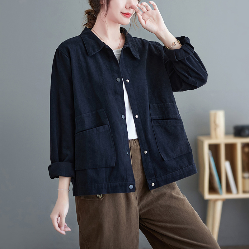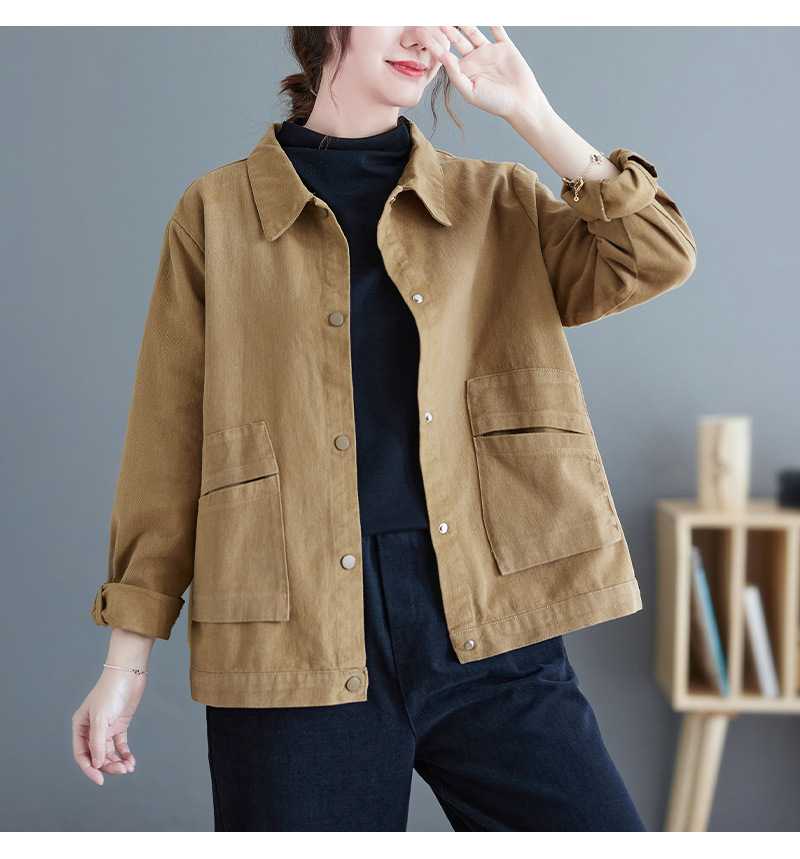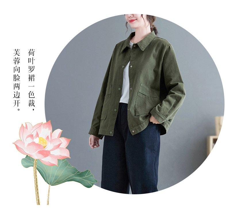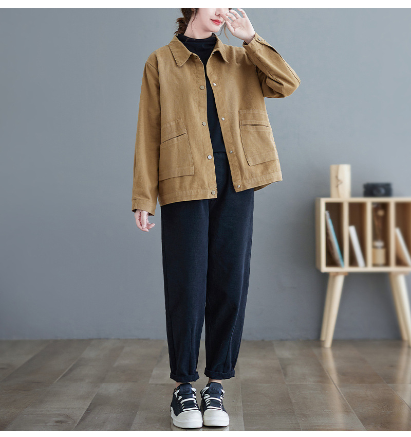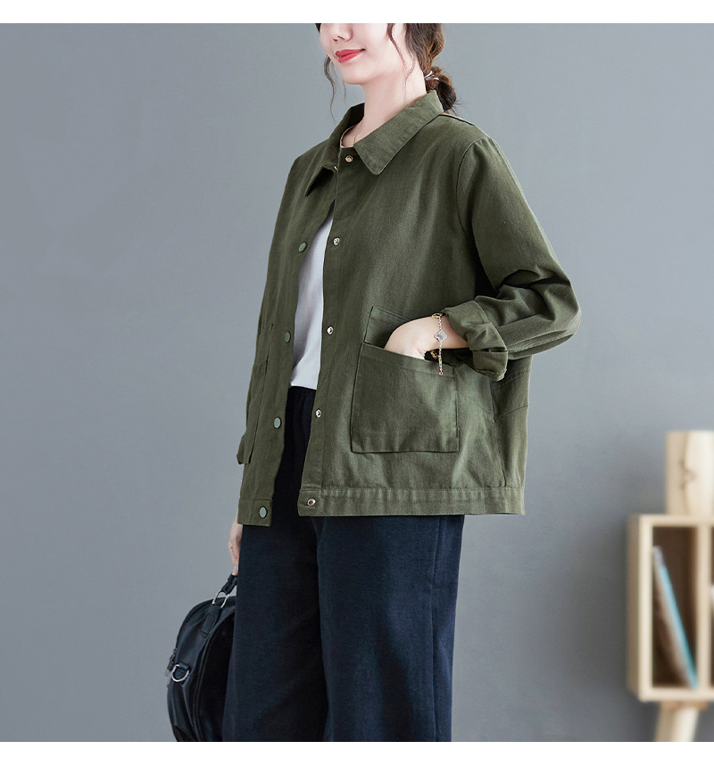 워시드 코튼 솔리드 컬러 워크웨어 숏 자켓 여성용 2025 가을 신상품 통근 심플 빅사이즈 캐주얼 자켓 라펠스토어 가기