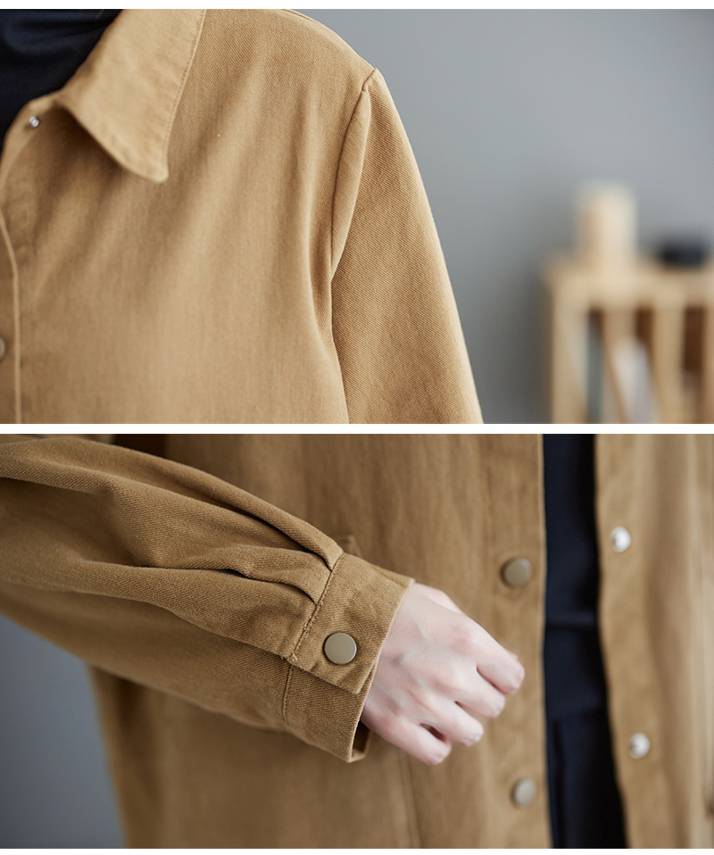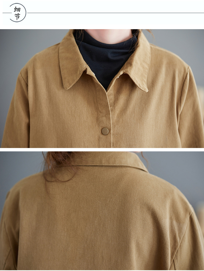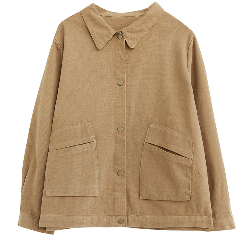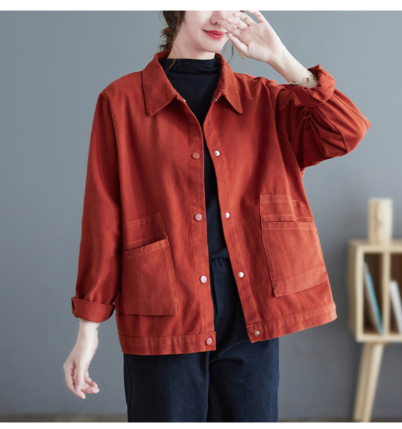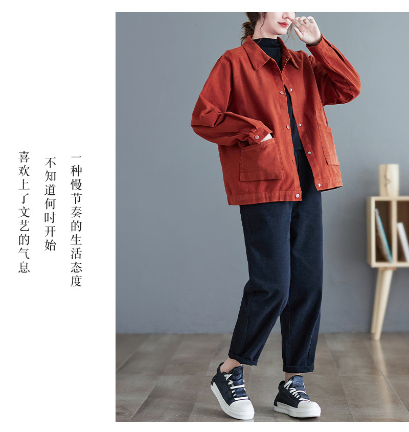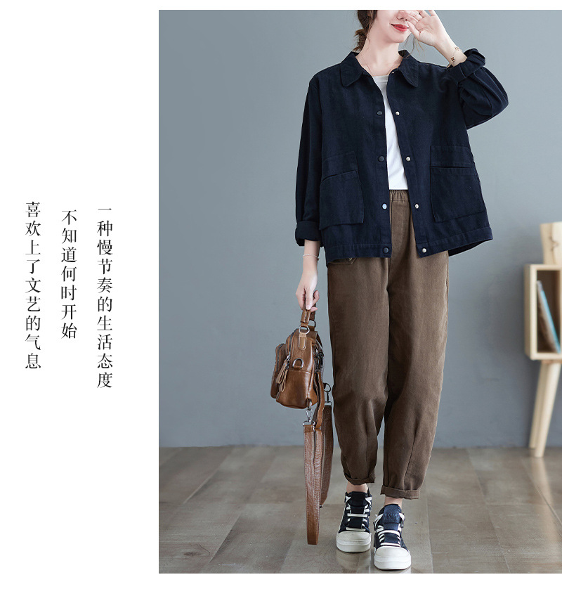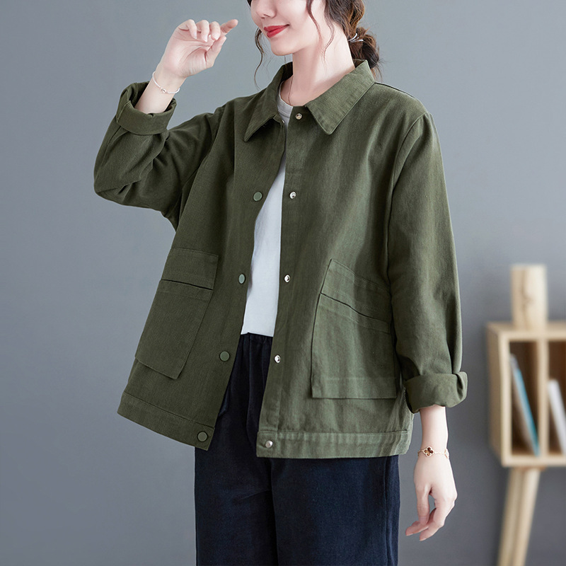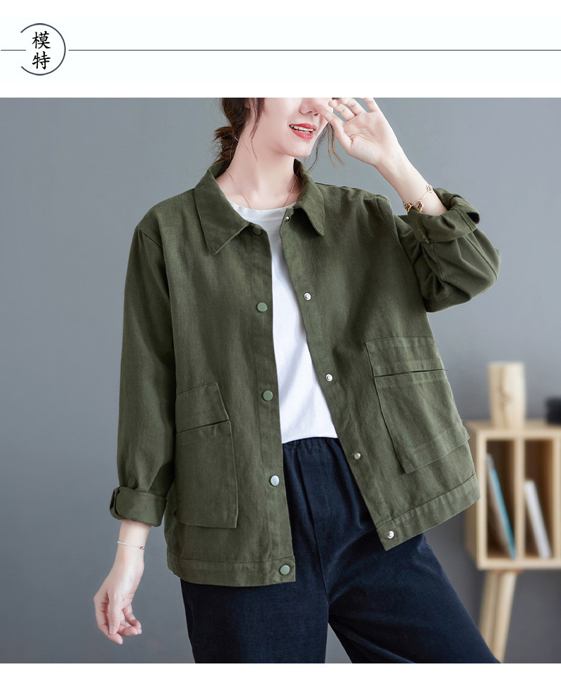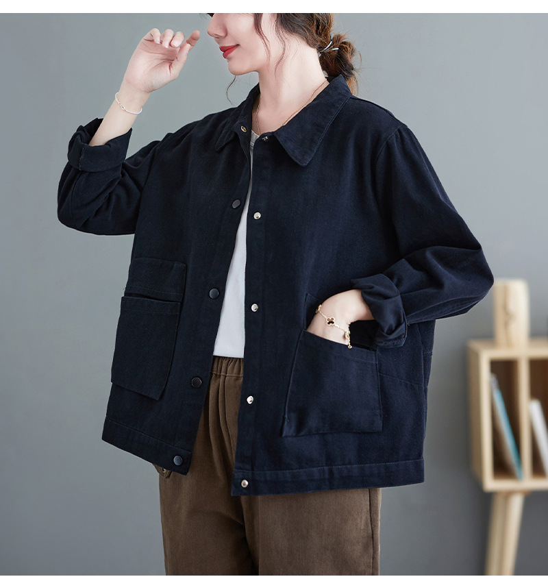 워시드 코튼 솔리드 컬러 워크웨어 숏 자켓 여성용 2025 가을 신상품 통근 심플 빅사이즈 캐주얼 자켓 라펠스토어 가기
