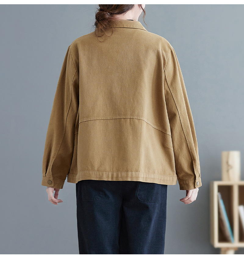 워시드 코튼 솔리드 컬러 워크웨어 숏 자켓 여성용 2025 가을 신상품 통근 심플 빅사이즈 캐주얼 자켓 라펠