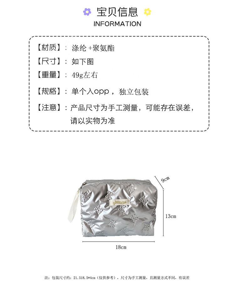 한국식 고가의 나비 화장품 가방 간단한 단색 초음파 양각 스킨 케어 보관 가방 여행 세탁 가방