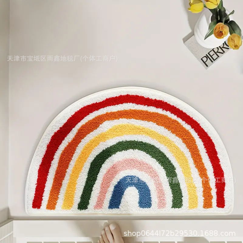 국경 간 무지개 반원형 캐시미어 바닥 매트 욕실 흡수성 미끄럼 방지 발 매트 룸 장식 바닥 매트 침대 옆 쿨 매트스토어 가기