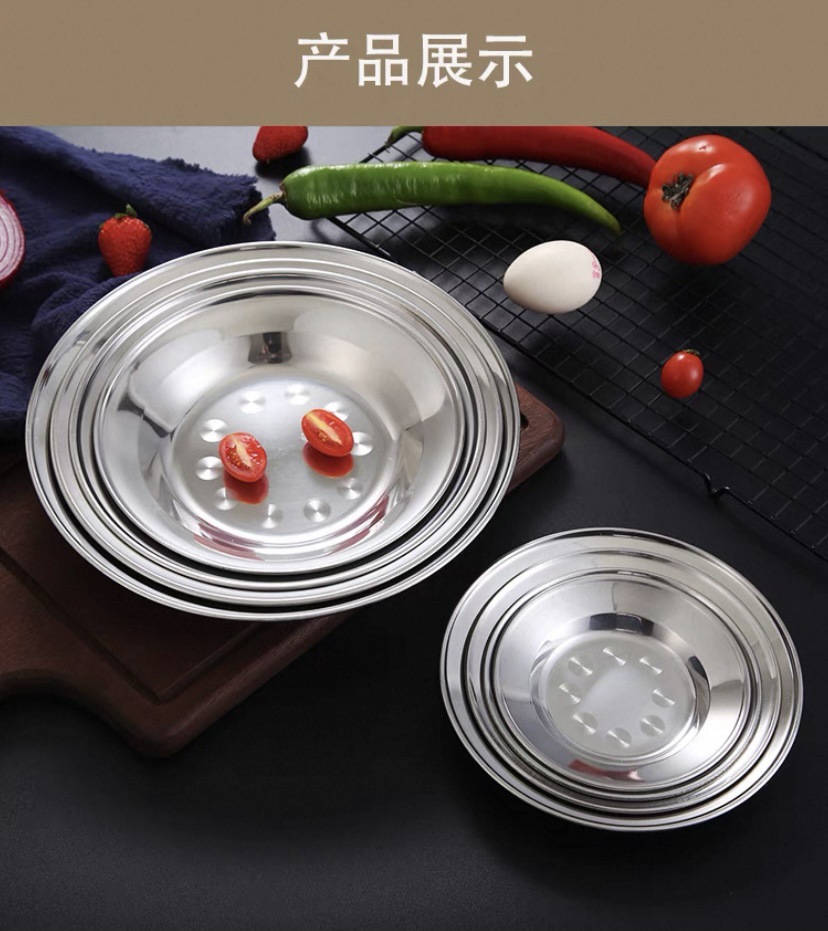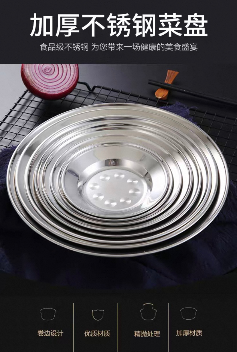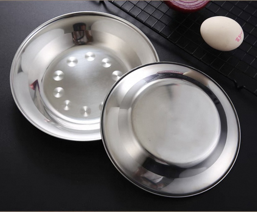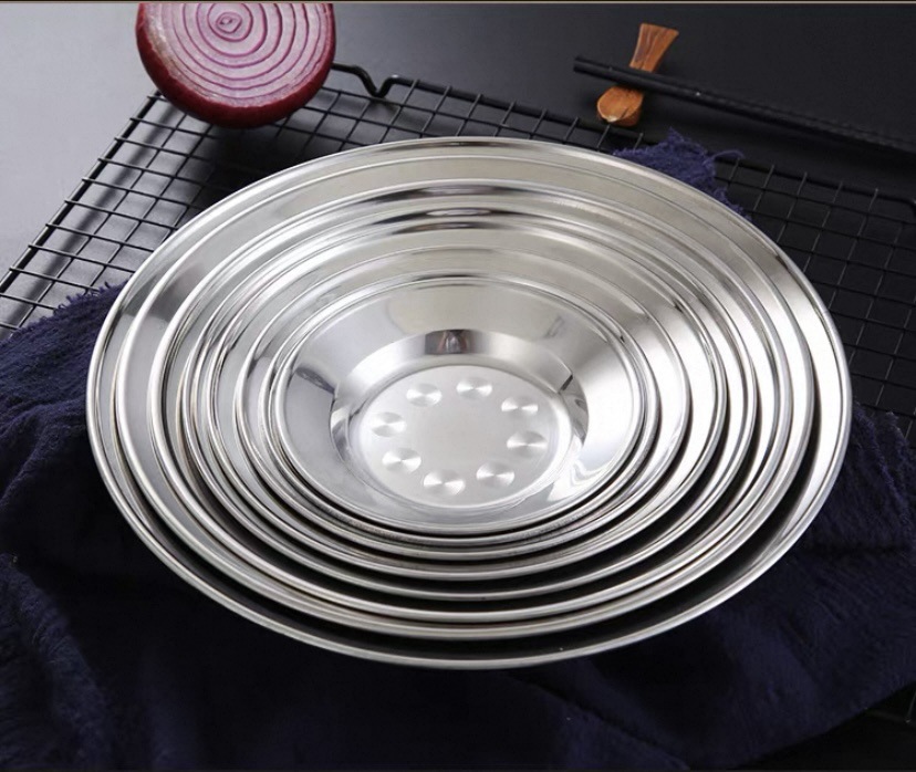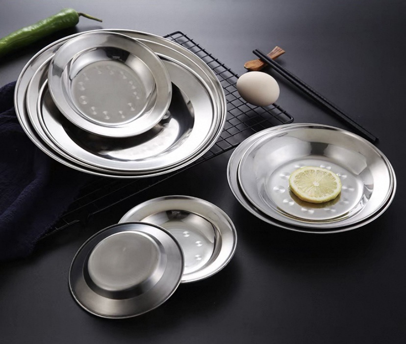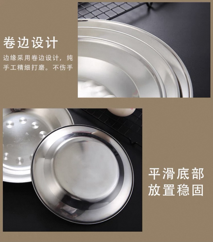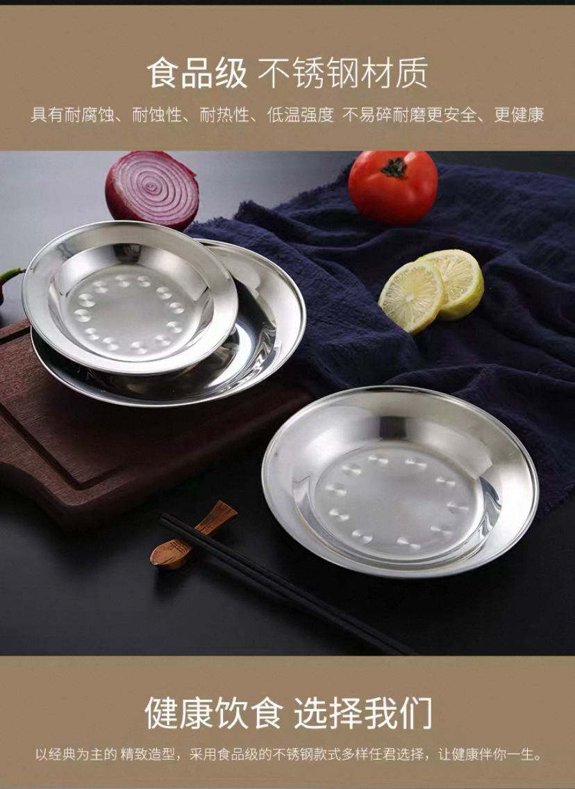 스테인레스 스틸 원형 접시 접시 유치원 과일 접시 디저트 접시 학교 접시 철 접시 레터링 레스토랑 얕은 접시스토어 가기