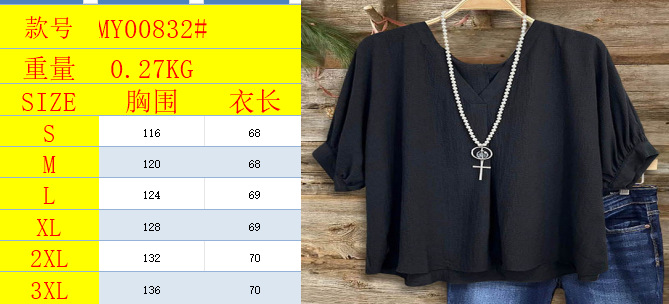 2025 유럽과 미국 대외 무역 플러스 사이즈 신작 여성 의류 Amazon 독립 스테이션 V 넥 탑 반팔 셔츠스토어 가기