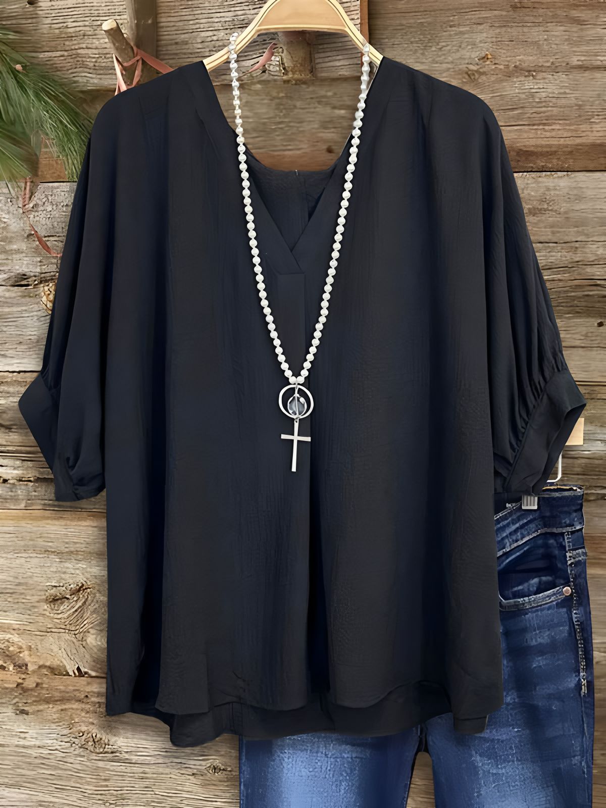 2025 유럽과 미국 대외 무역 플러스 사이즈 신작 여성 의류 Amazon 독립 스테이션 V 넥 탑 반팔 셔츠
