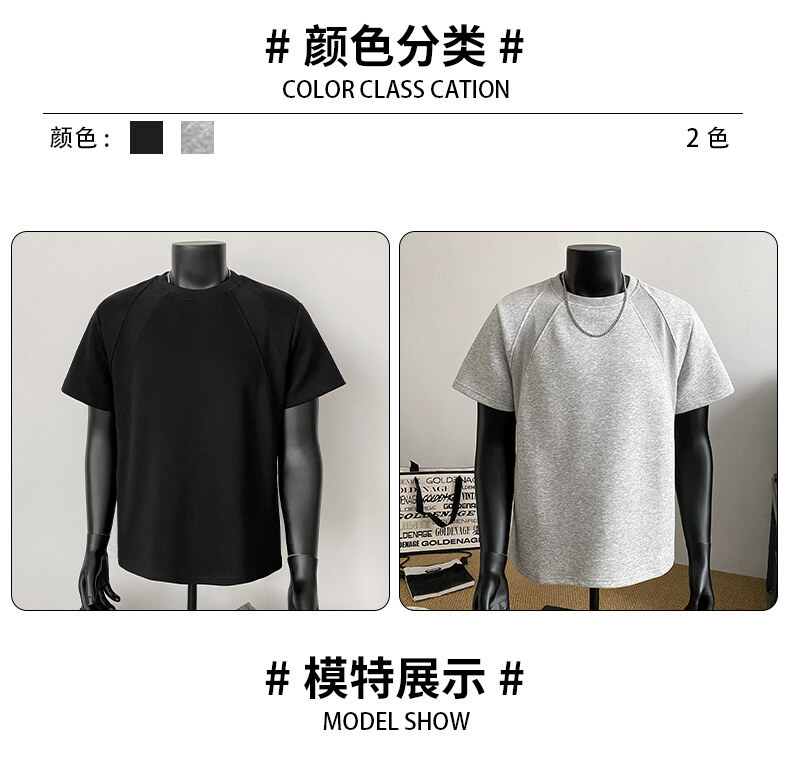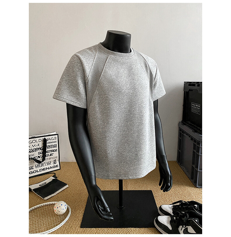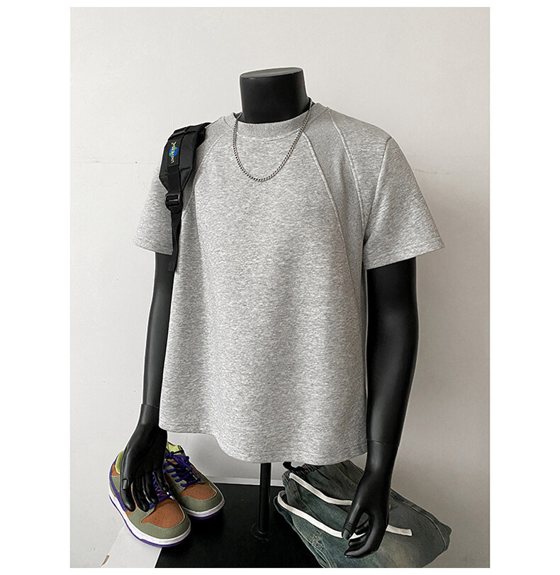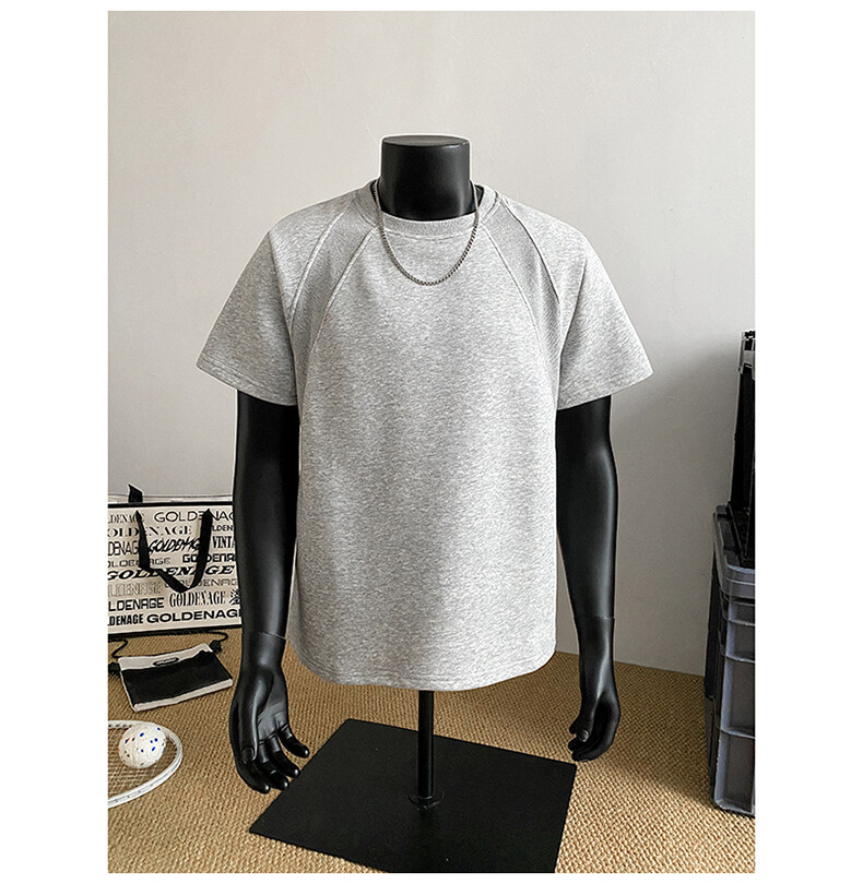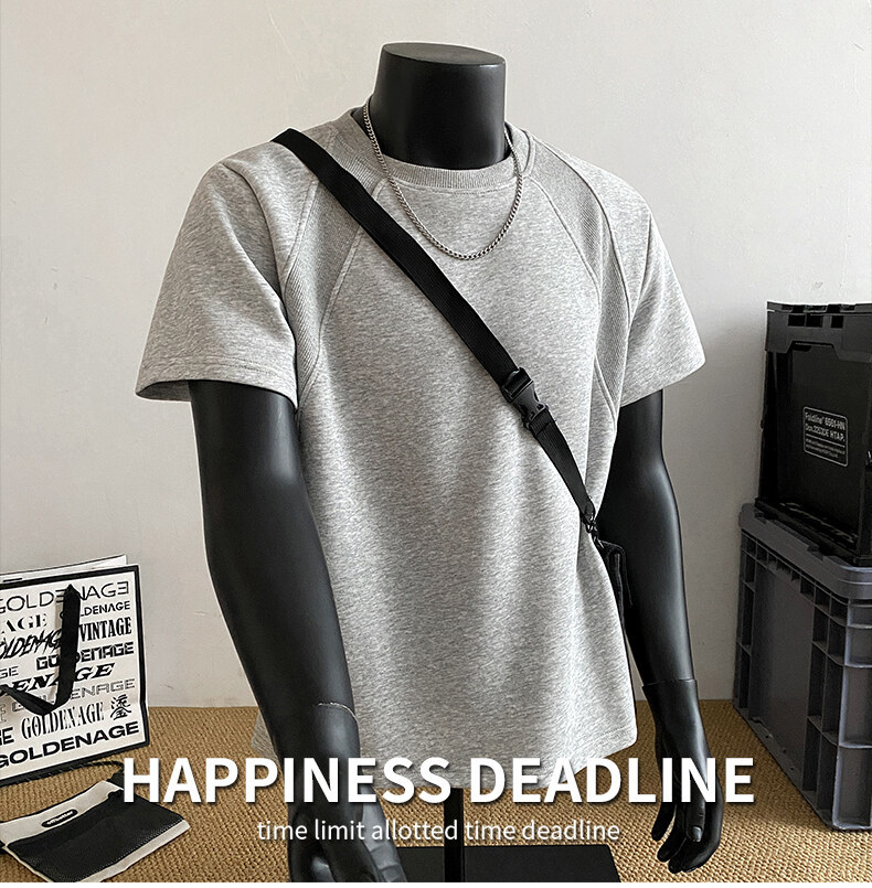 디자인 센스 스페이스 코튼 에어 레이어 바느질 어깨 반팔 티셔츠 남성 여름 아메리칸 스타일 박스 스타일 듀플렉스 핸들 반소매 티셔츠스토어 가기