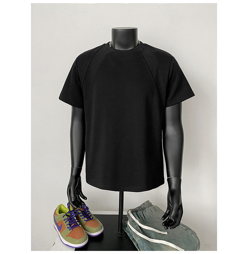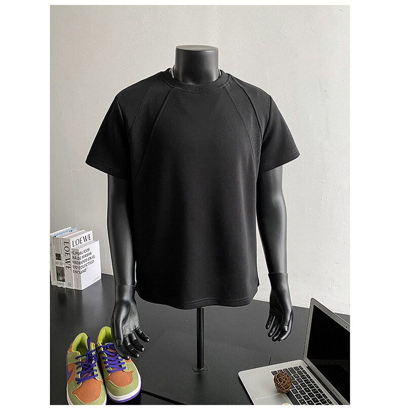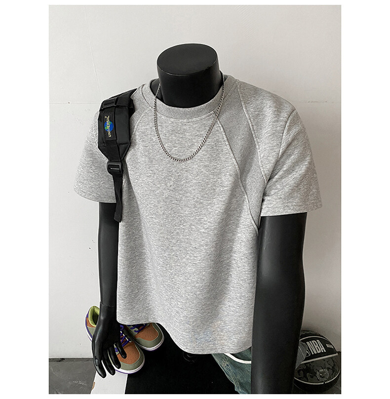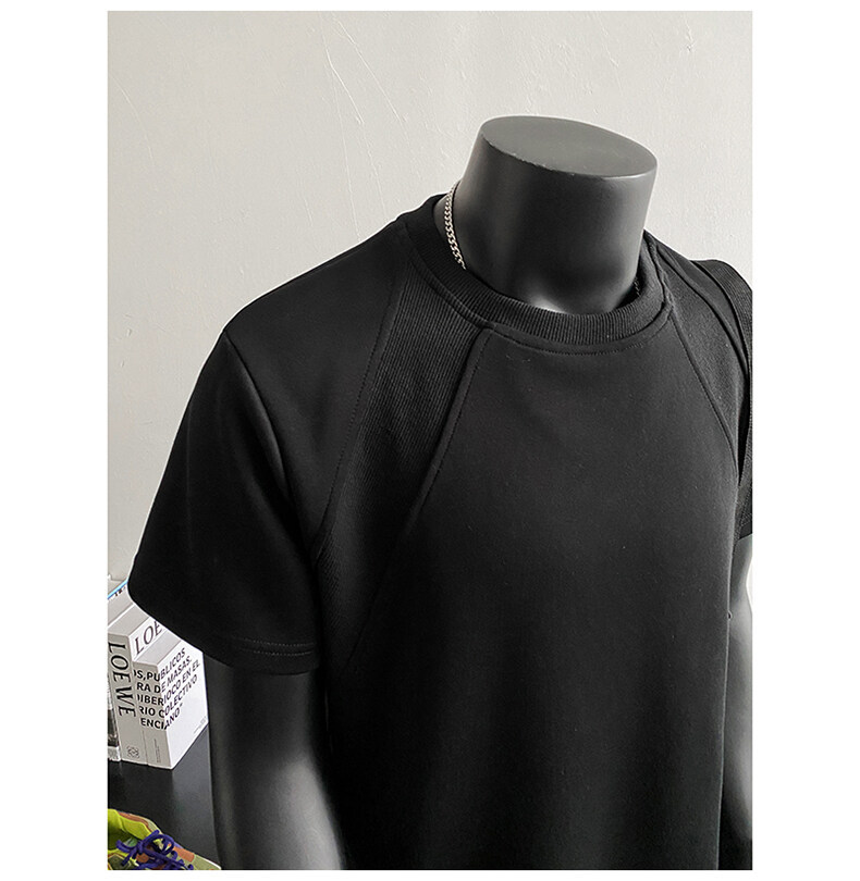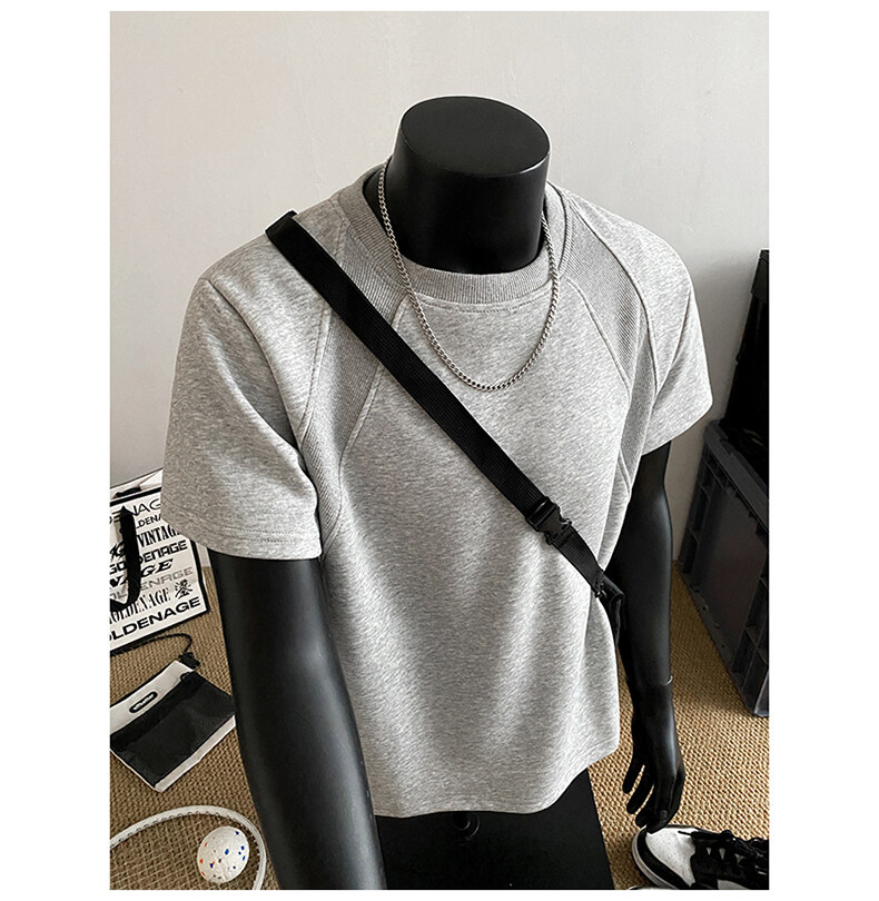 디자인 센스 스페이스 코튼 에어 레이어 바느질 어깨 반팔 티셔츠 남성 여름 아메리칸 스타일 박스 스타일 듀플렉스 핸들 반소매 티셔츠