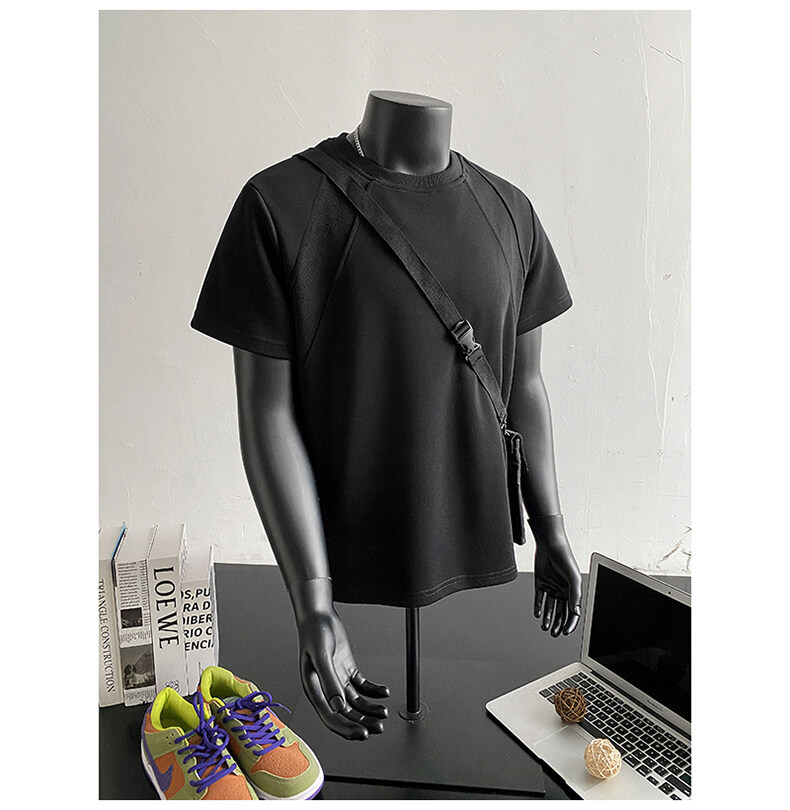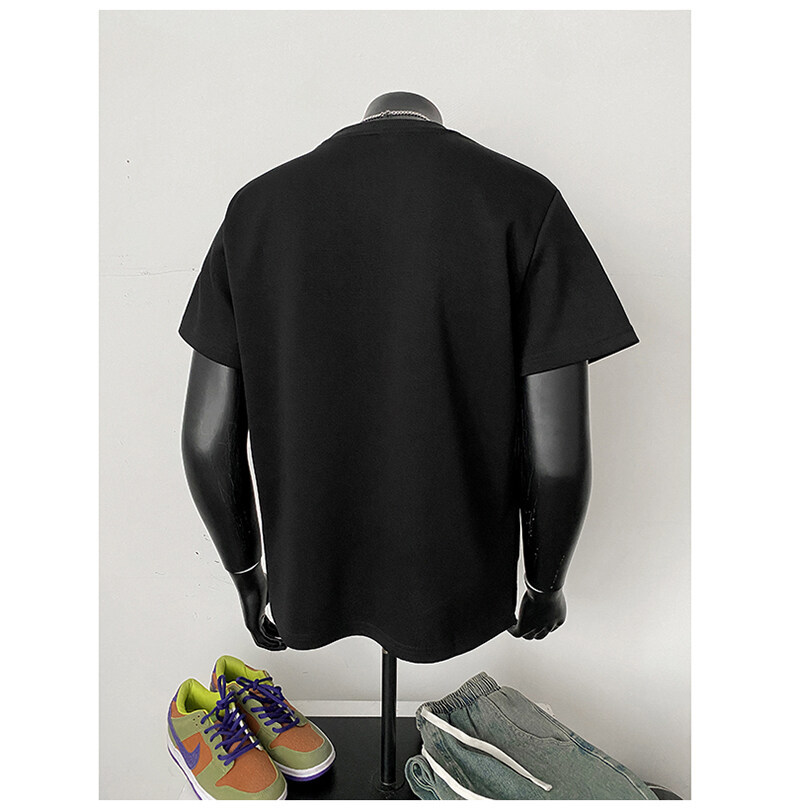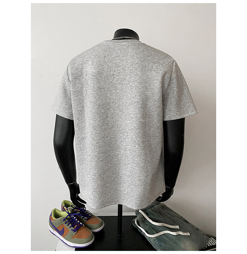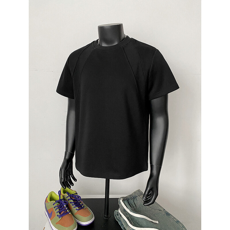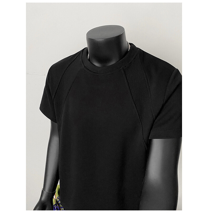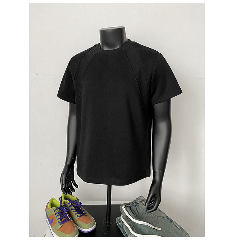 디자인 센스 스페이스 코튼 에어 레이어 바느질 어깨 반팔 티셔츠 남성 여름 아메리칸 스타일 박스 스타일 듀플렉스 핸들 반소매 티셔츠